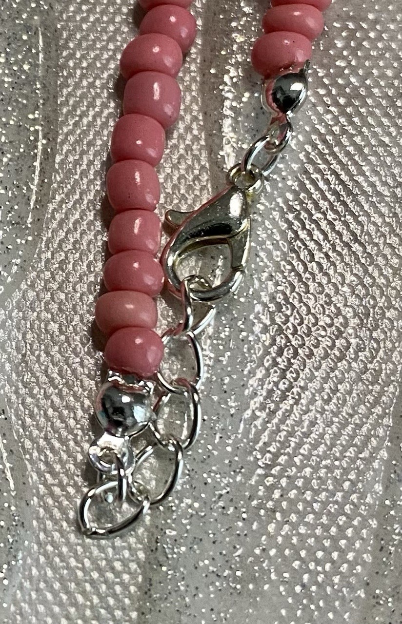 как выглядит Free Shipping Girl Pink Seed Bead Wire Necklace With Round Pink Peace charm фото