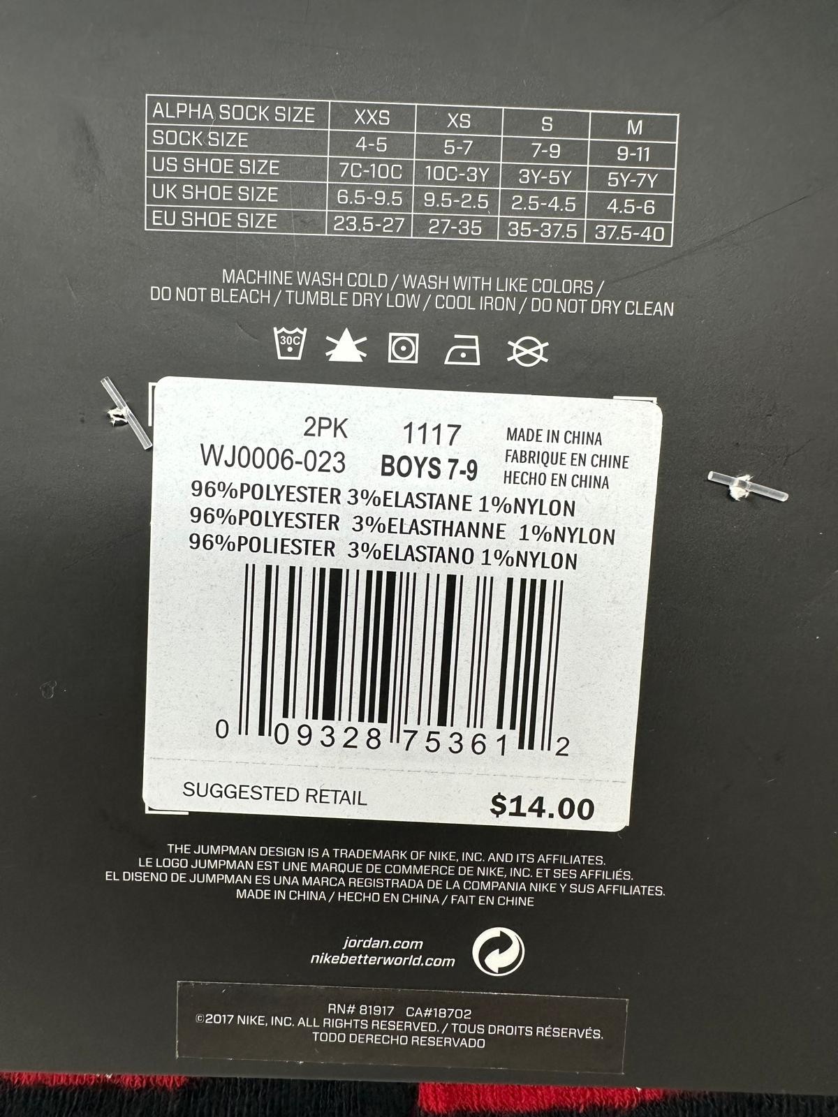как выглядит Nike Air Jordan Kids 4-Pairs High Crew Socks 3612 - Sz:7-9, Black/Red, B1 A63T фото