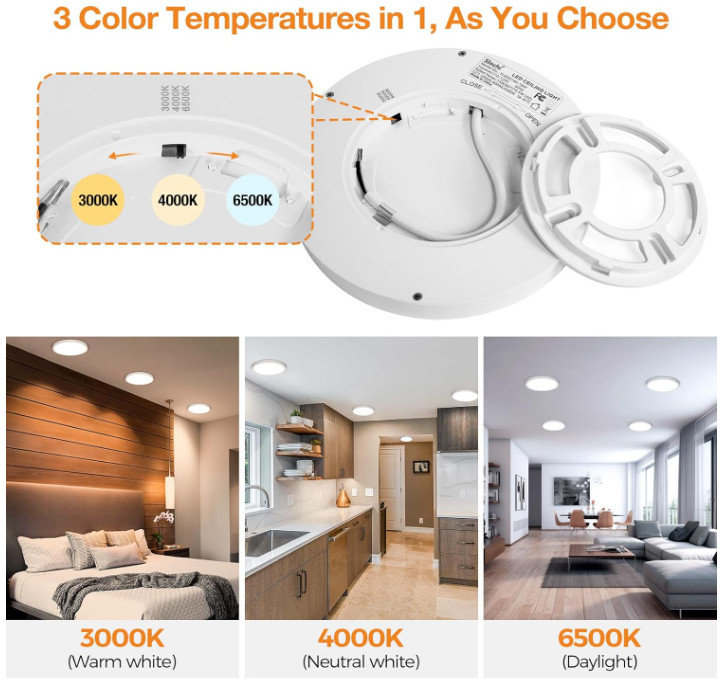 как выглядит 8 PACK LED Flush Mount Ceiling Light Fixture, 3000K-4000K-6500K 100W фото