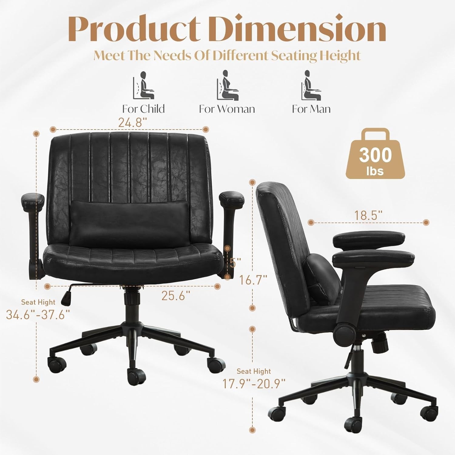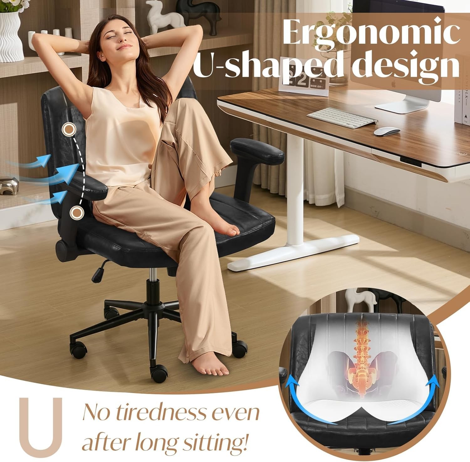 Home Office Criss Cross Chair with Wheels and Adjustable Flip Arms Lumbar Pillow