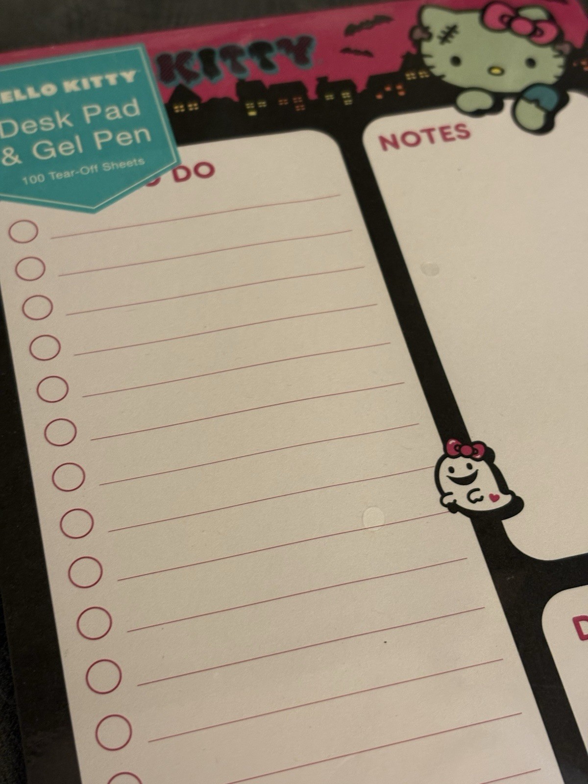 • Halloween Hello Kitty Desk PAD And GEL PEN Set. 100 Sheets. Brand New.