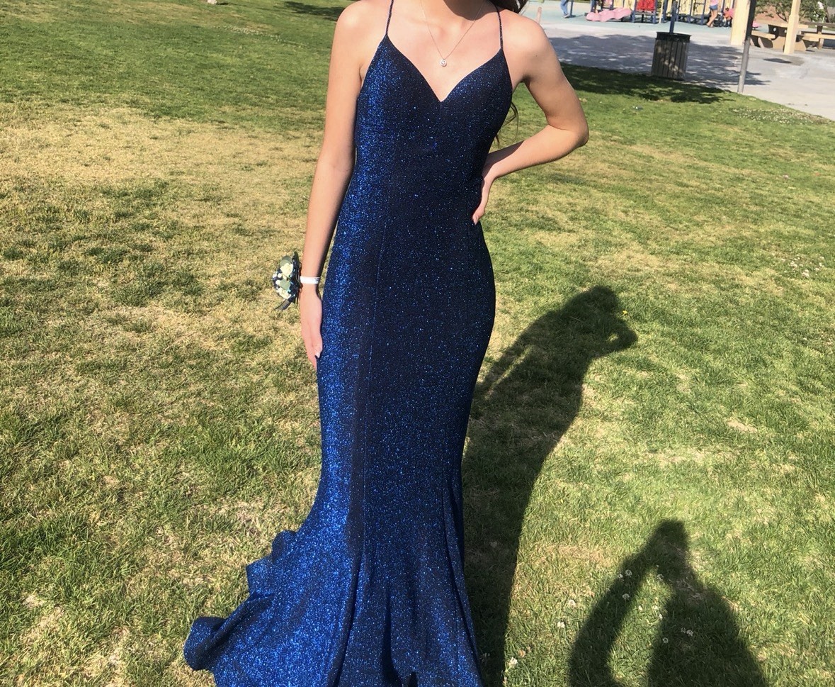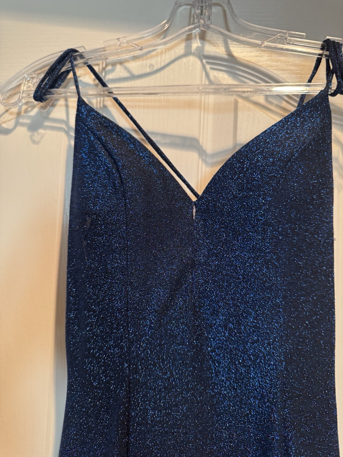 как выглядит Navy Blue Backless Lace-Up Prom Dress фото