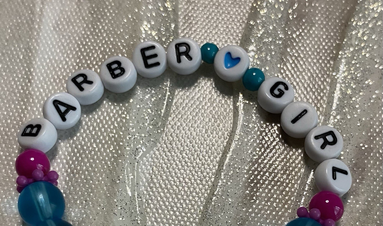 Free Shipping Girl s Blue And Pink Bead Stretch Bracelet With Barber Girl