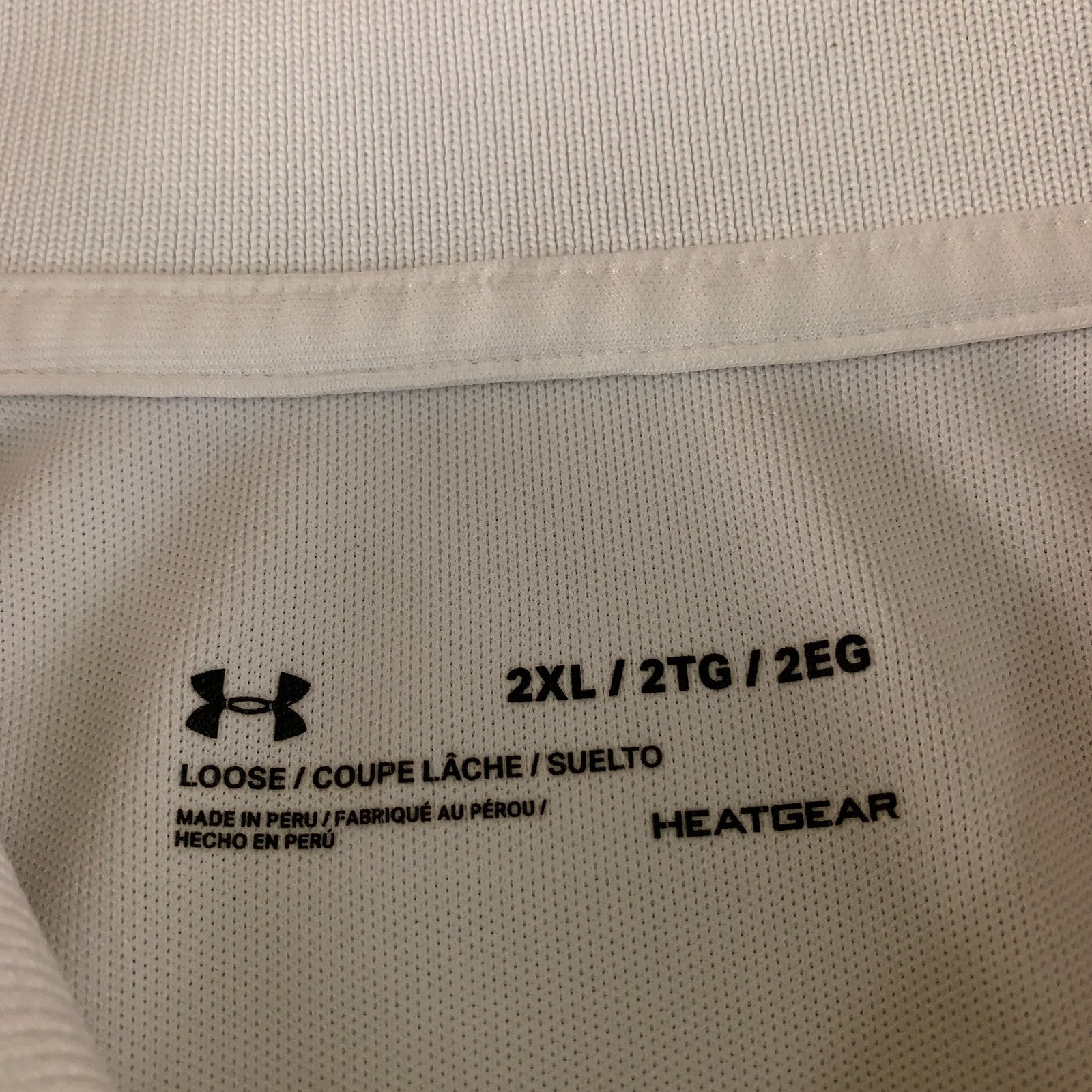 Under Armour HeatGear Mens 2XL Loose Fit White Short Sleeve Polo Shirt Flaw