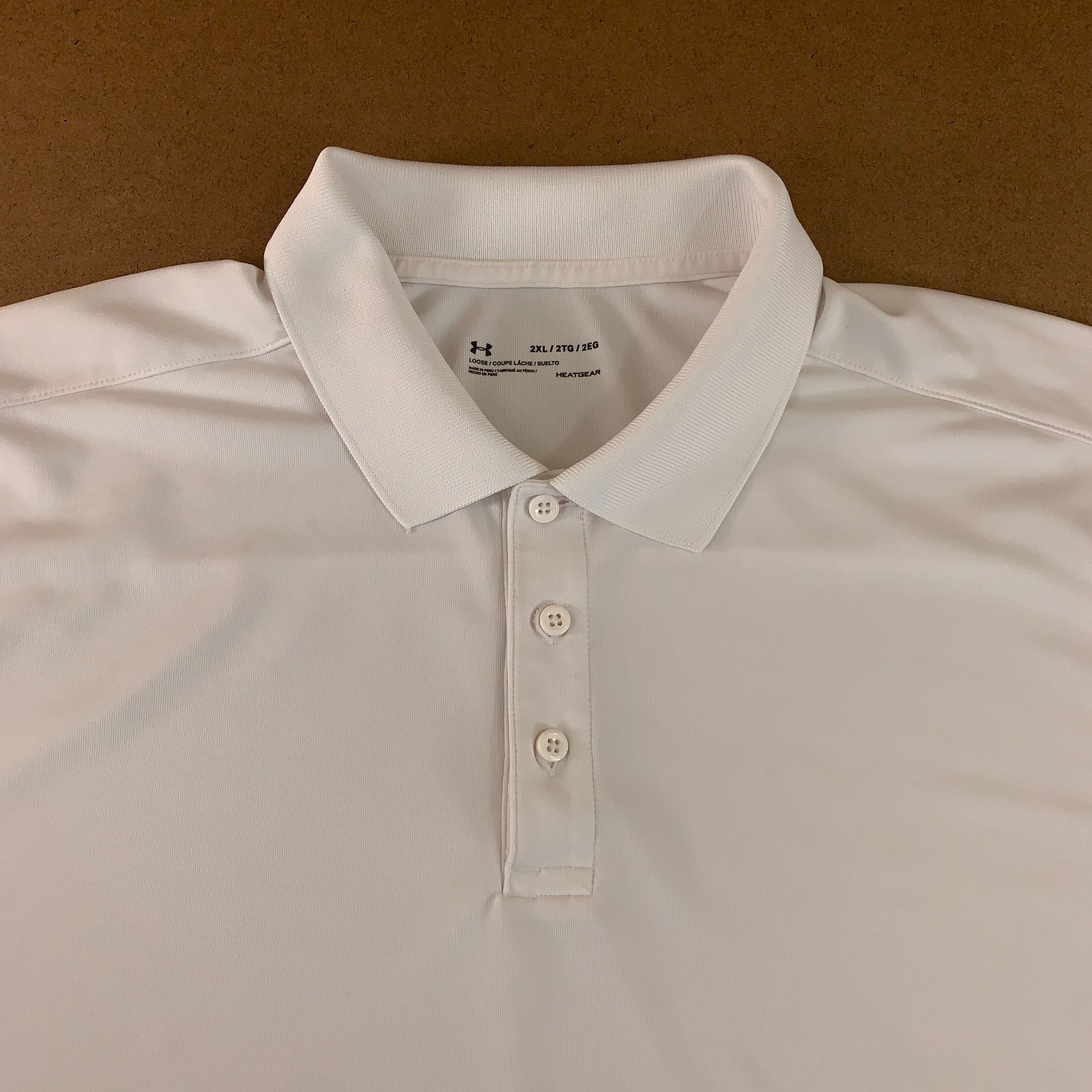 как выглядит Under Armour HeatGear Mens 2XL Loose Fit White Short Sleeve Polo Shirt Flaw фото