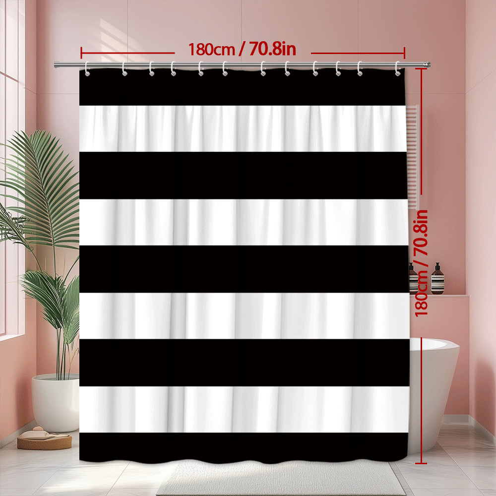 Black and White Stripe Shower Curtain, Modern Minimalist Bold Horzontal Pattern