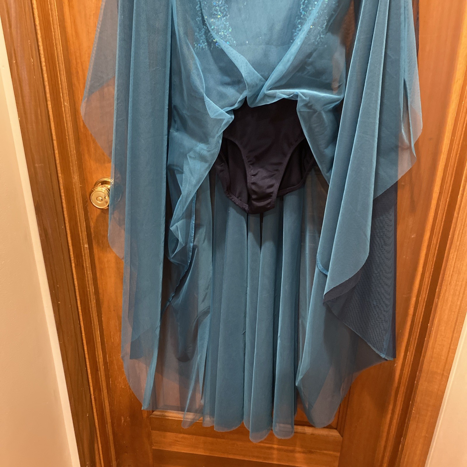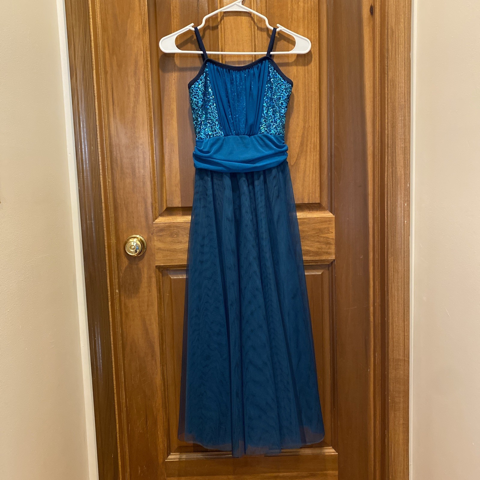 как выглядит Teal And Navy Sequins Lyrical Ballet Costume Ankle Length Child Large Excellent фото