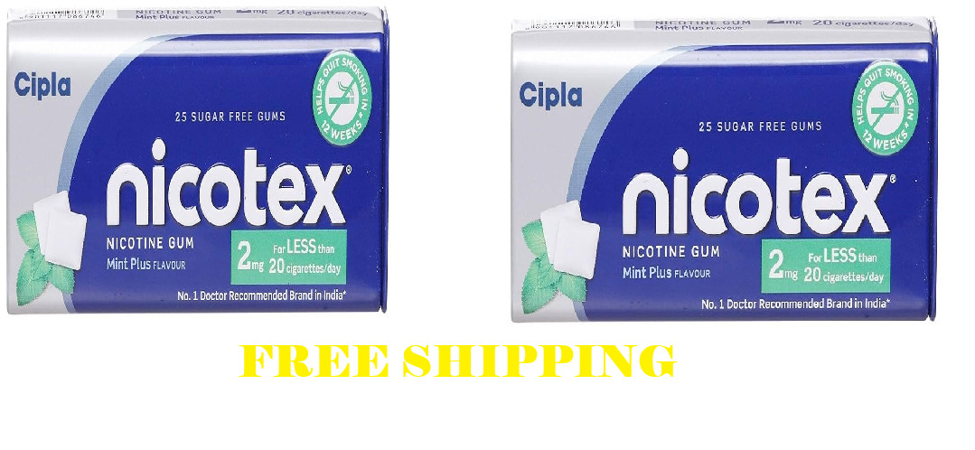 Cipla Nicotex Nicotine Gum 2mg Tin Mint Flavor Sugar Free Quit smoking 25 gums