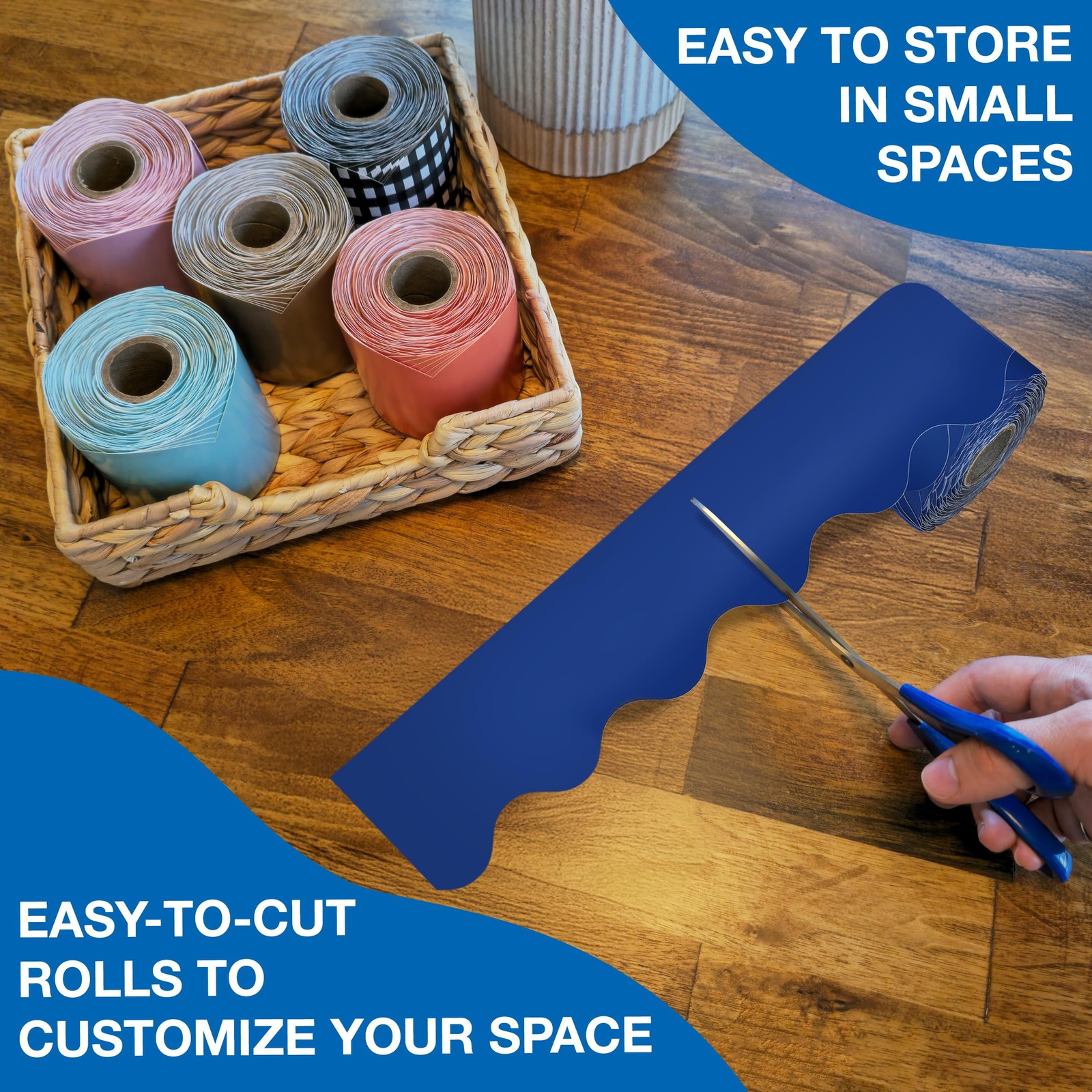 Carson Dellosa 65Ft of Navy Blue Bulletin Board Borders, 1 Roll of Scalloped Tri