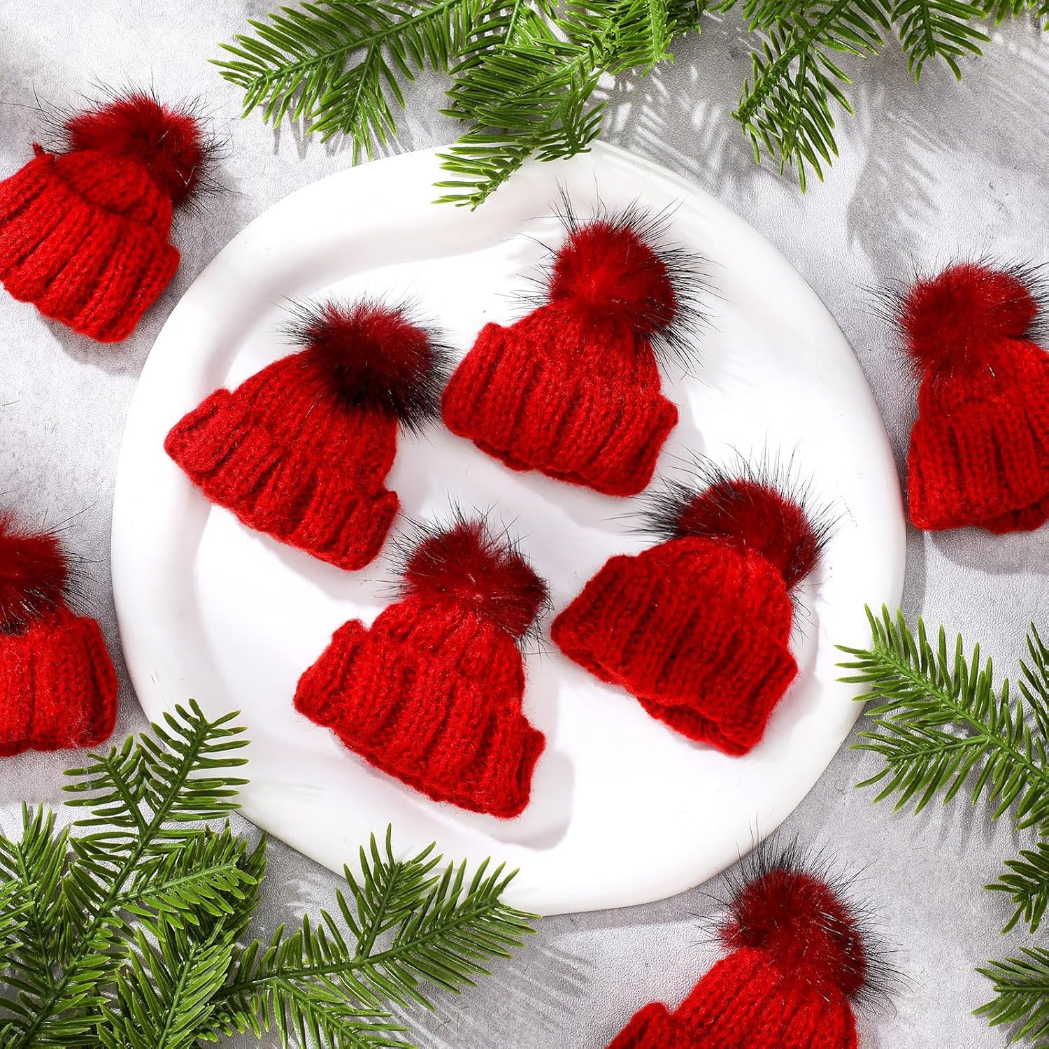 как выглядит Mini Christmas Knit Hats Doll Crafts Xmas Tiny Small Christmas Knit Hats Tree Or фото