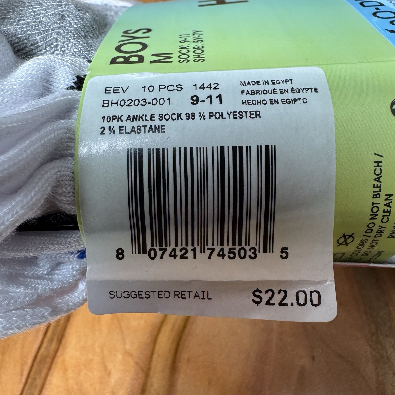 как выглядит Hurley H2O-DRI Quarter Socks 10 Pack Youth Boys Sock Size 9-11 5Y-7Y NEW фото