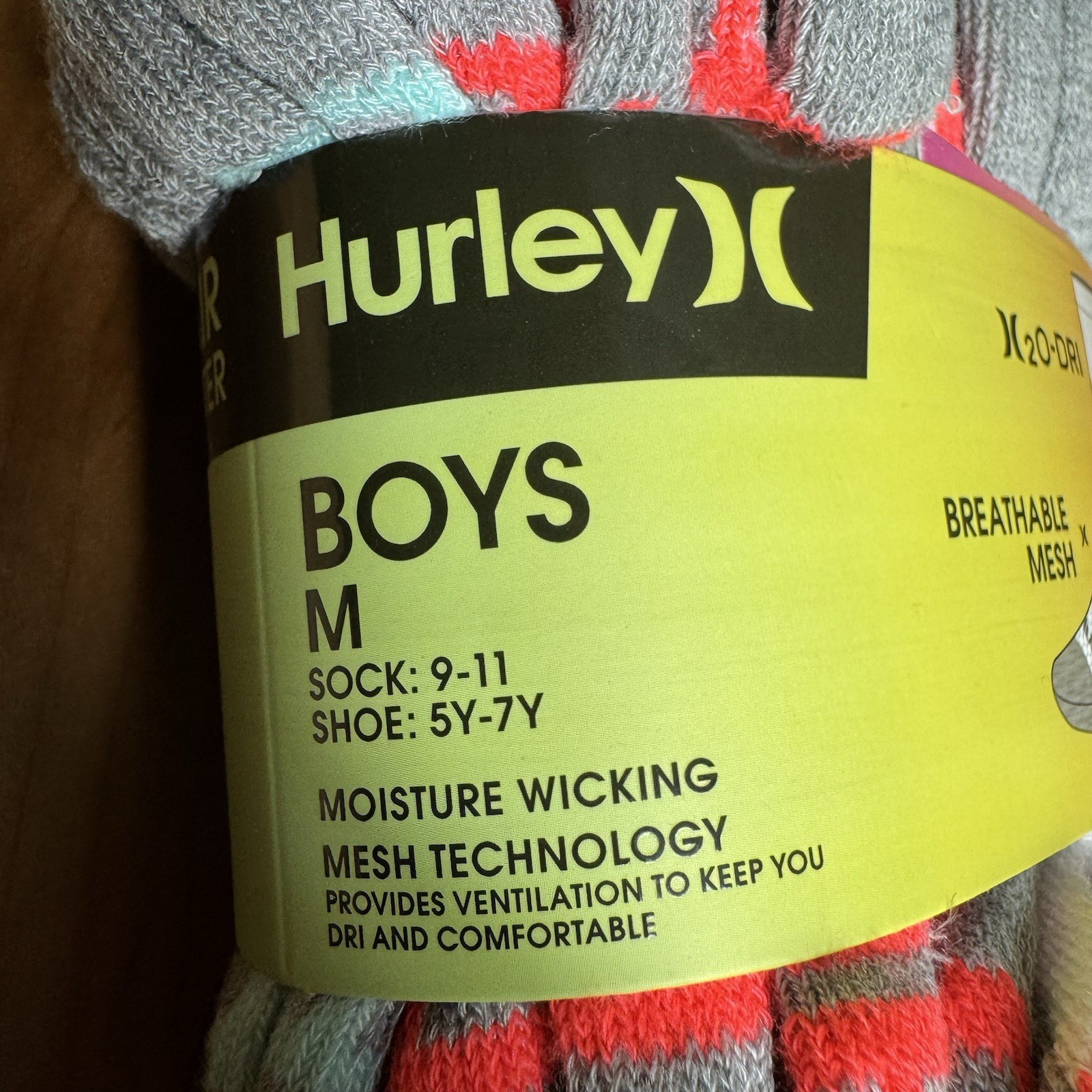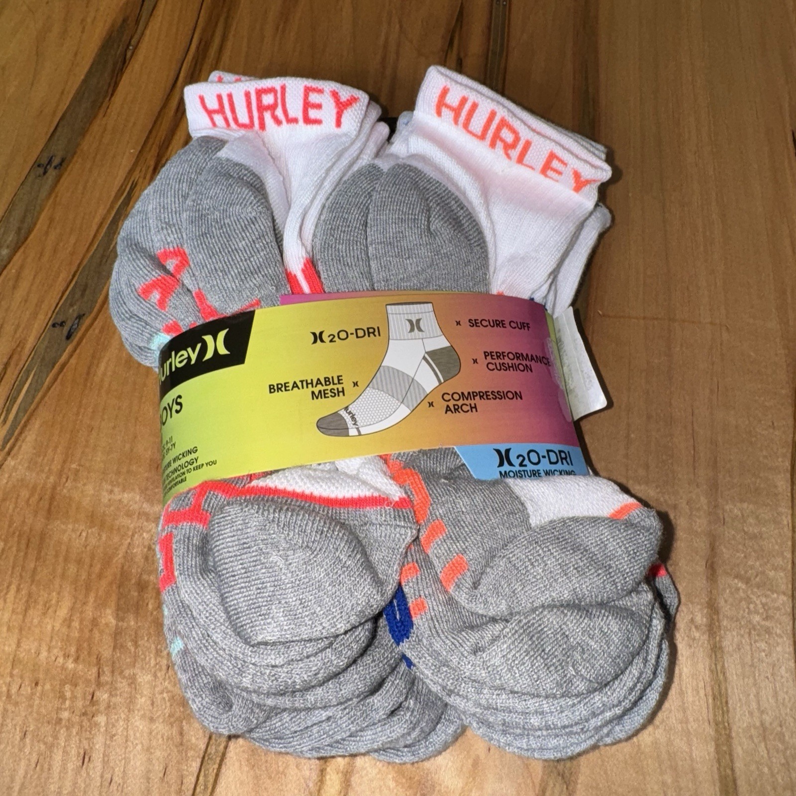 Hurley H2O-DRI Quarter Socks 10 Pack Youth Boys' Sock Size 9-11 5Y-7Y NEW