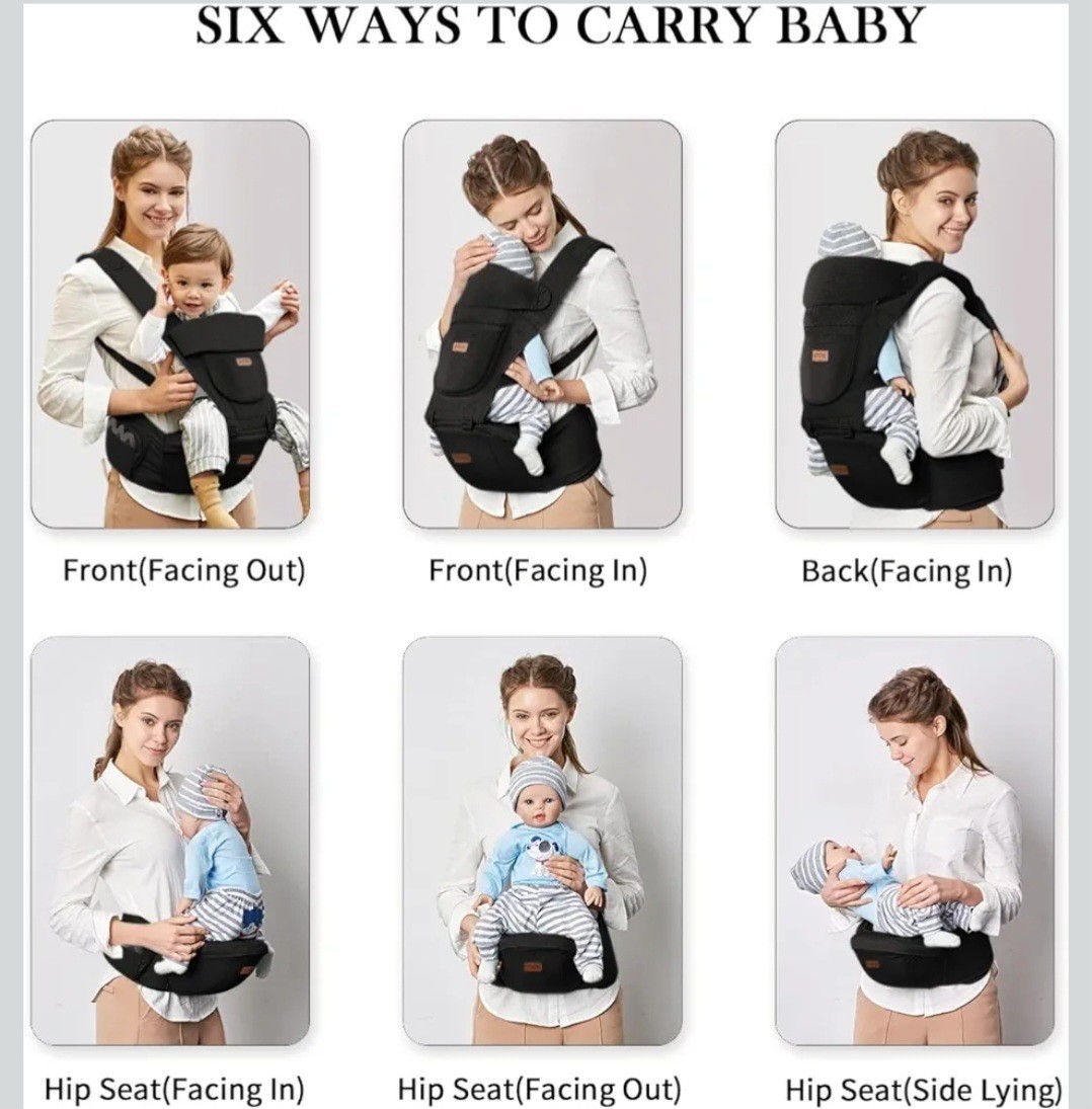 Baby Carrier with Hip Seat Adjustable 6-in-1 Holder for Newborn to Toddler