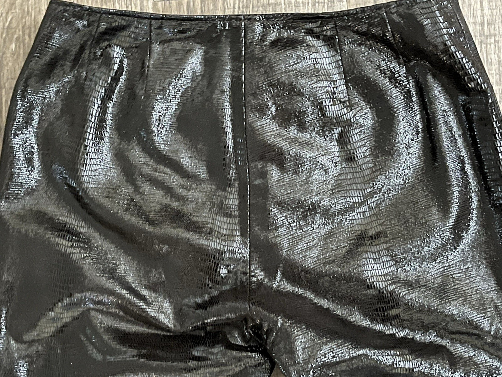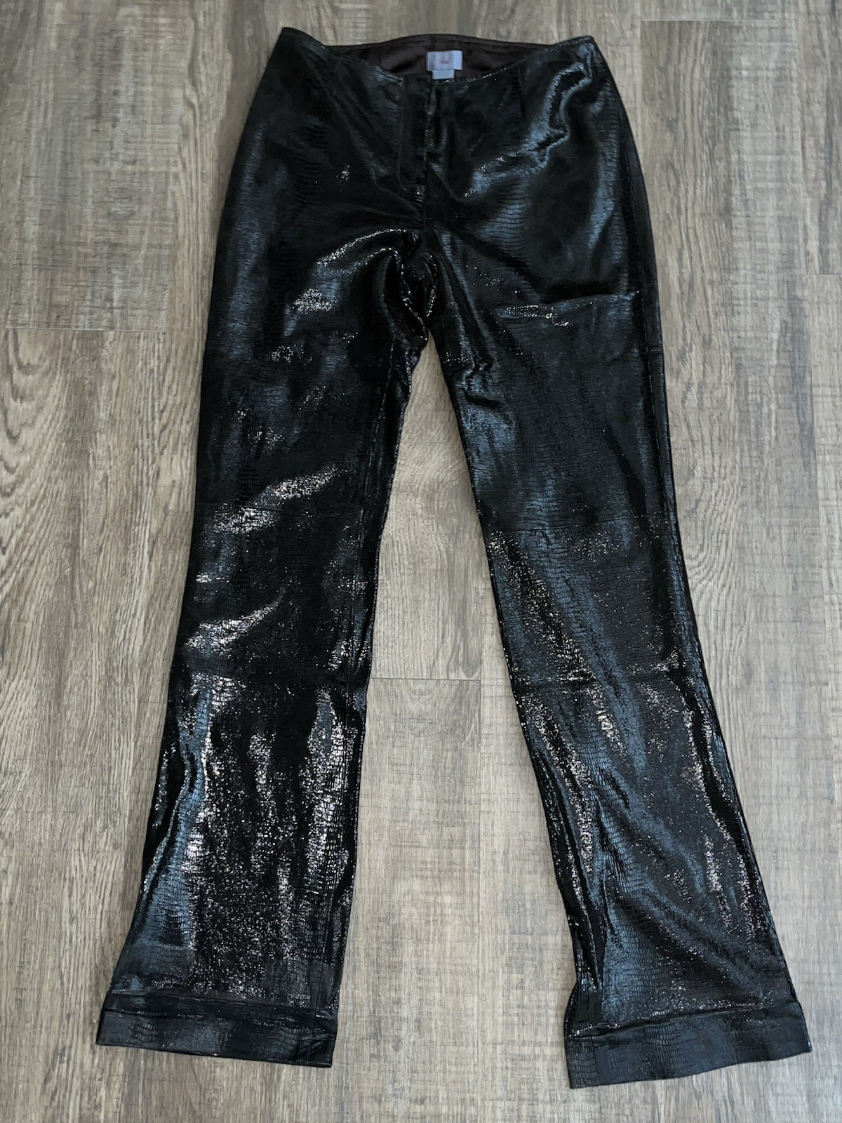 как выглядит Shiny Black Genuine Leather Pants Womens Reptile Pattern Size 2 28" Waist Sleek фото