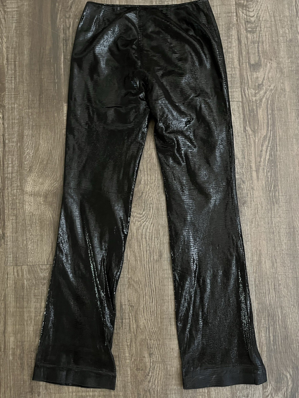 Shiny Black Genuine Leather Pants Womens Reptile Pattern Size 2 28 Waist Sleek