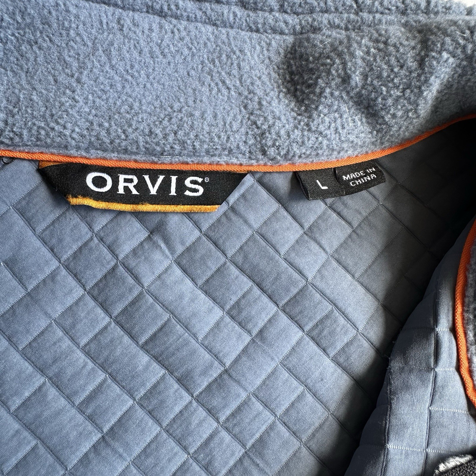 как выглядит Orvis Mens Quarter Snap Pullover Quilted Sweater Brown XXL Herringbone Fleece фото