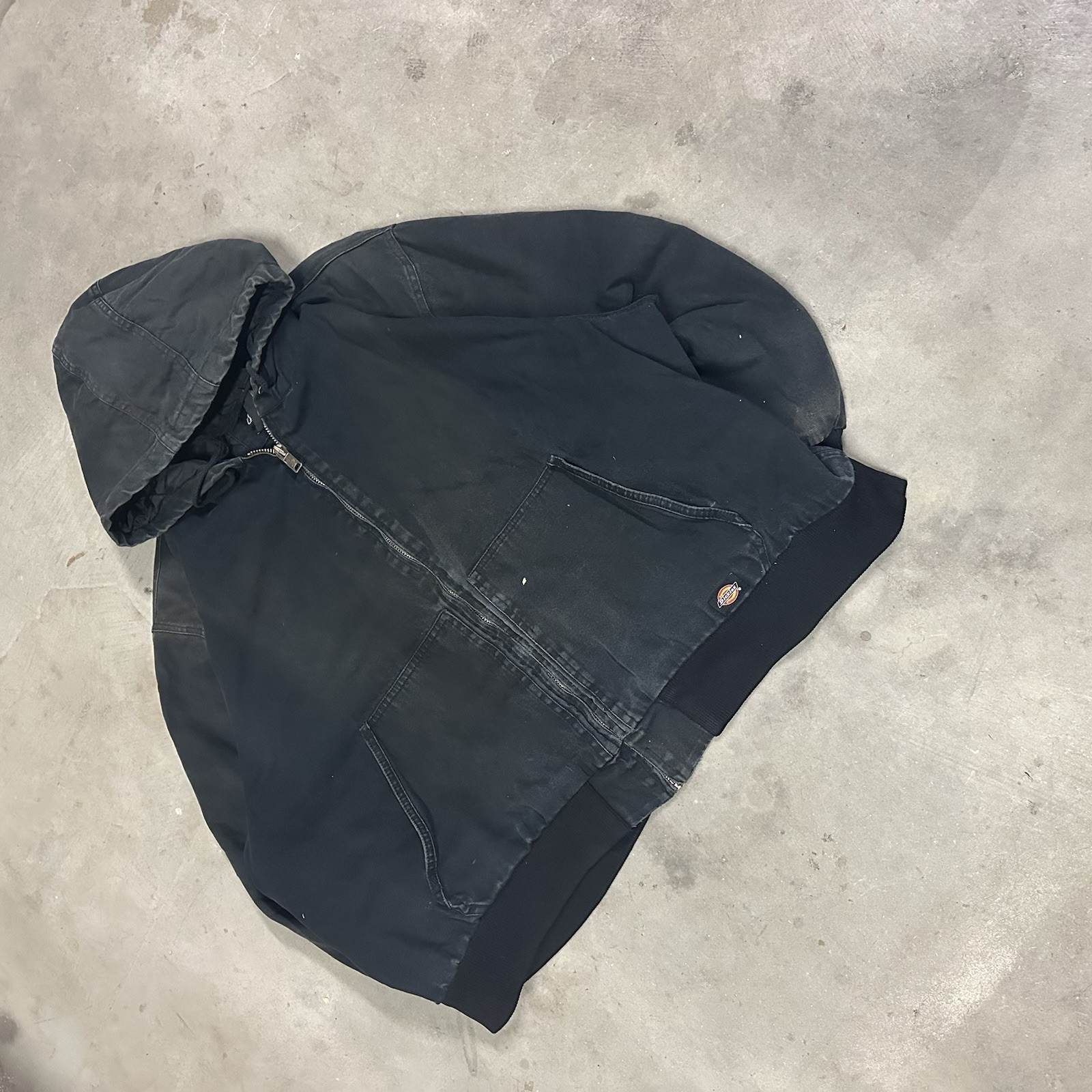 как выглядит Dickies Men XL Black Hooded Jacket Quilt Line Zip Workwear Coat Y2K Skate Canvas фото