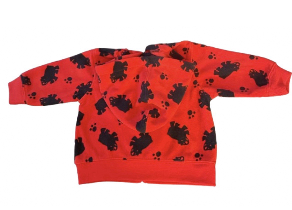 Oshkosh B'Gosh Size 6m Red Hooded Fleece Jacket Full Zip Bears EUC