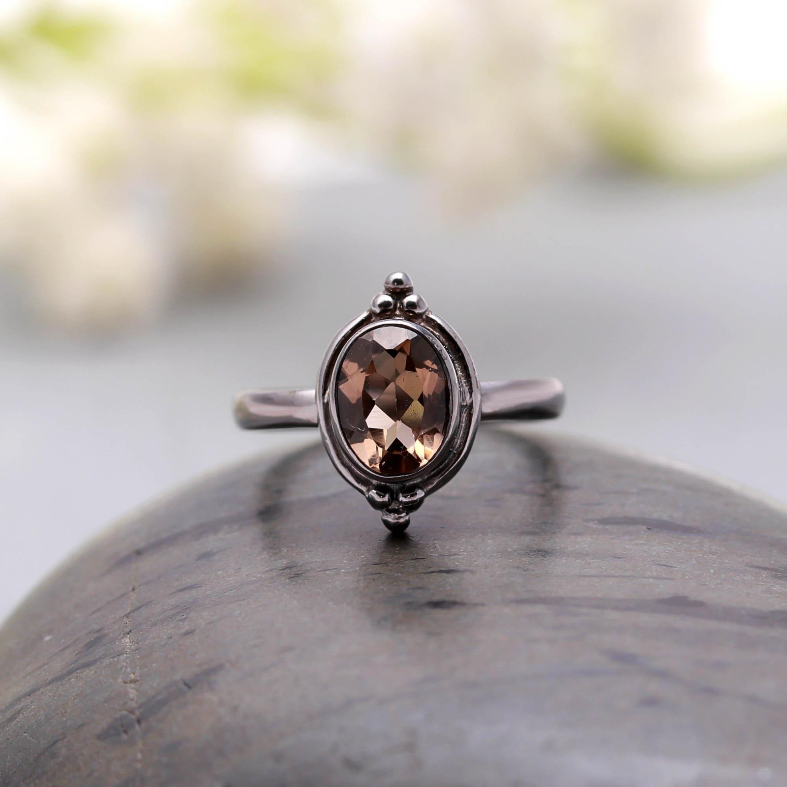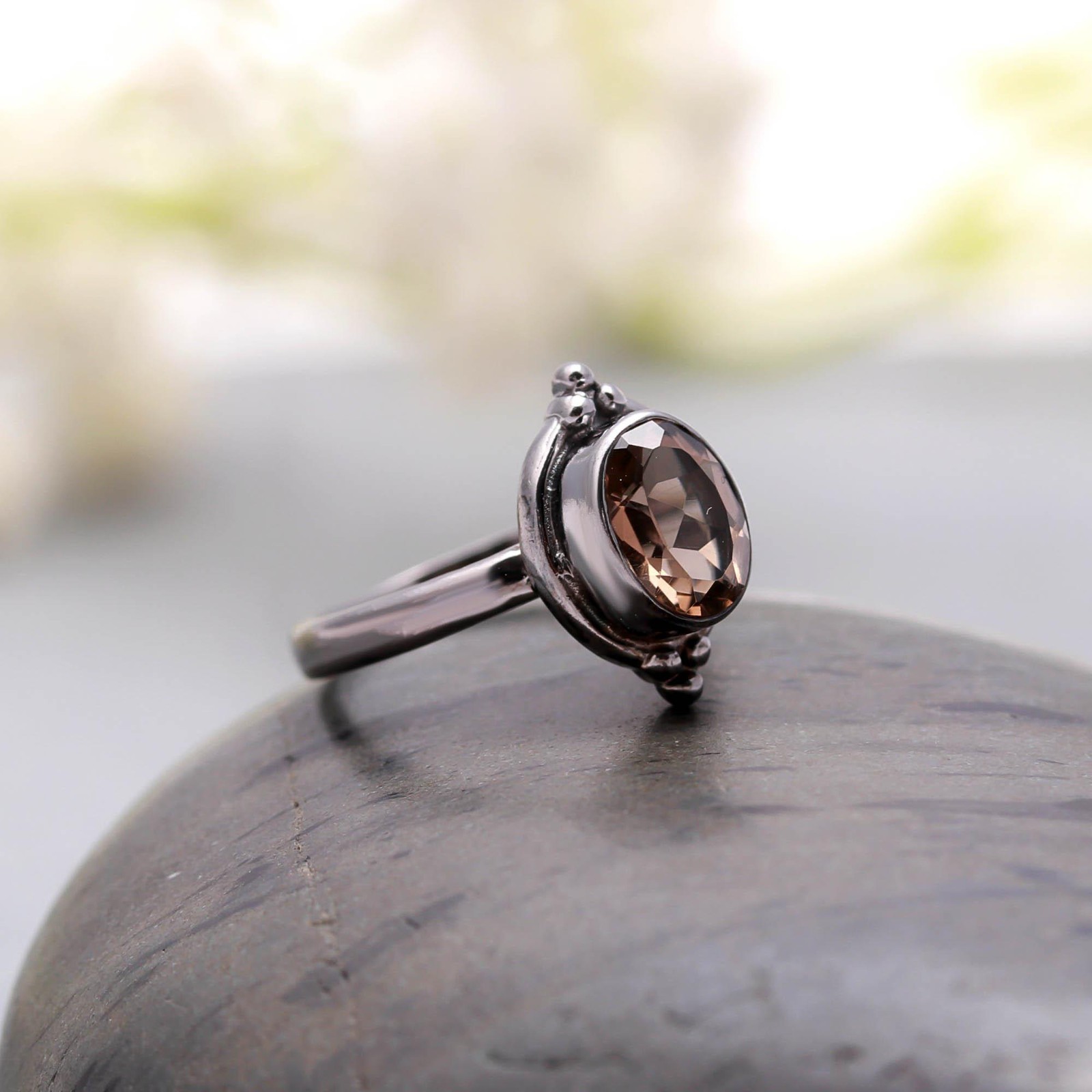 Smoky Quartz Oval Ring Oxidized Sterling Silver Handmade Jewelry Wedding Gift