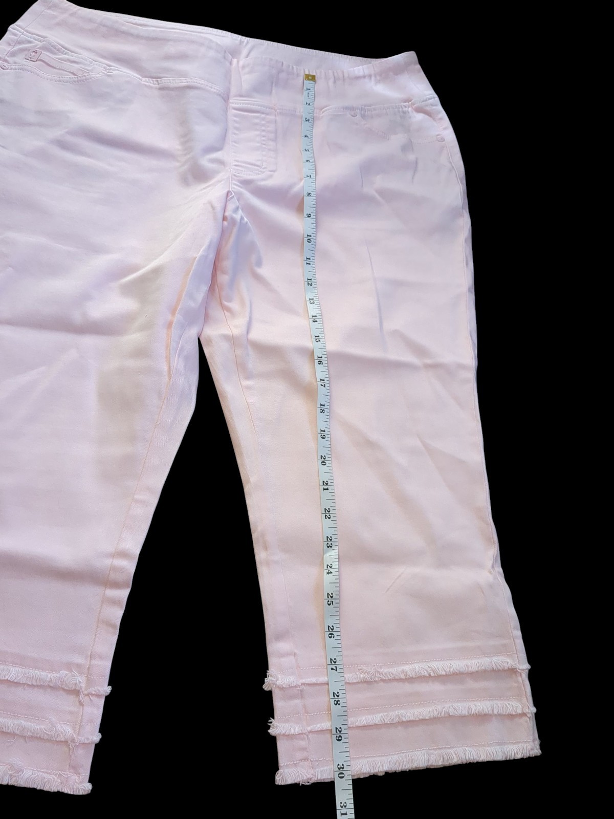 Belle by Kim Gravel Pink TripleLuxe Twill Wide Leg Crop with Fray Pants Size LG