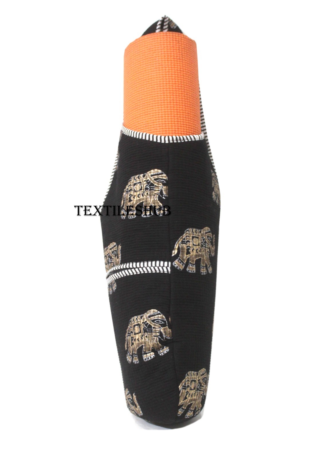 Cotton Quilted Yoga Mat Bag Handmade Elephant Print Shoulder Carrier with Zipper