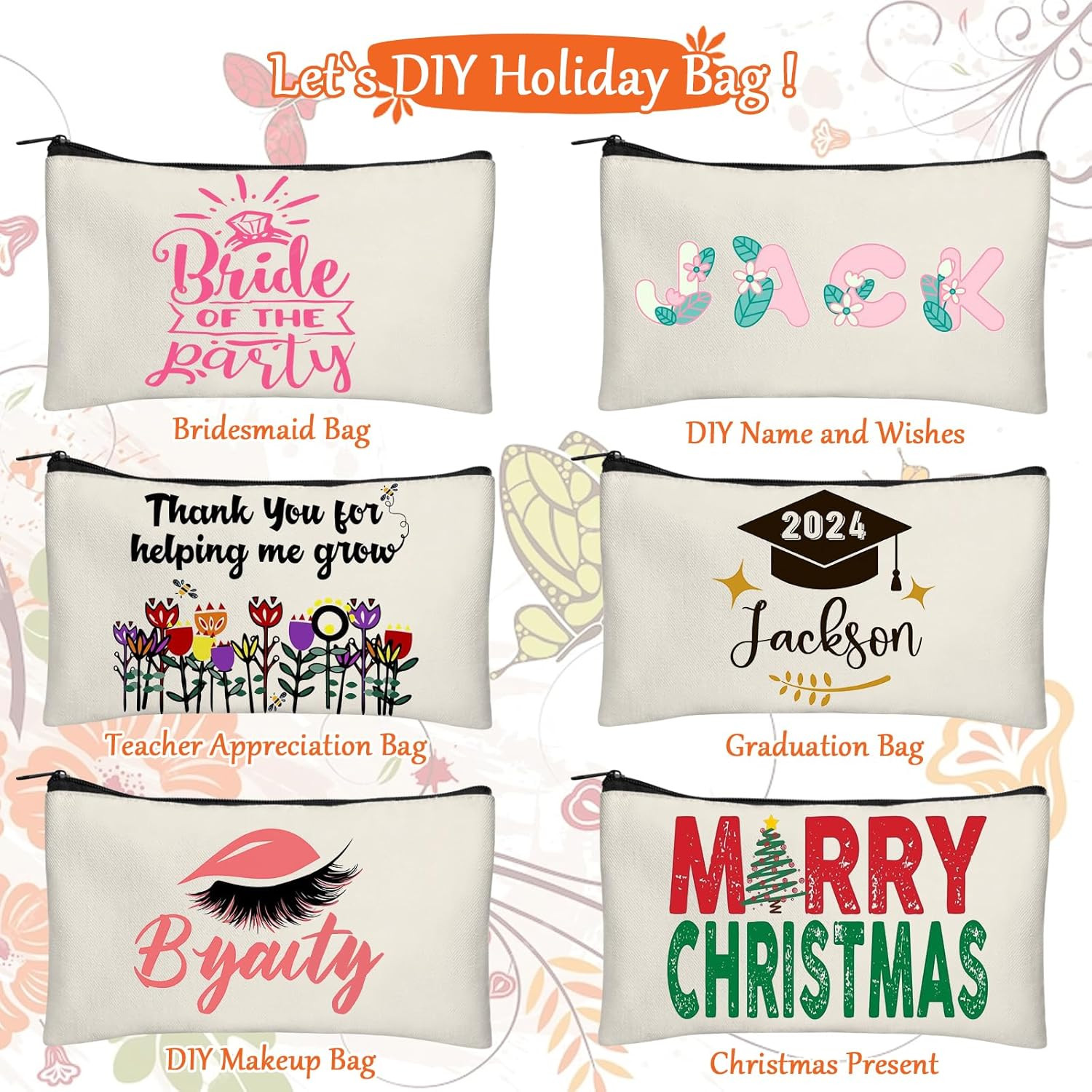 Blank Canvas Bag Zipper Pouch Makeup Bags Bulk - Multi-Purpose Canvas Pencil Pou