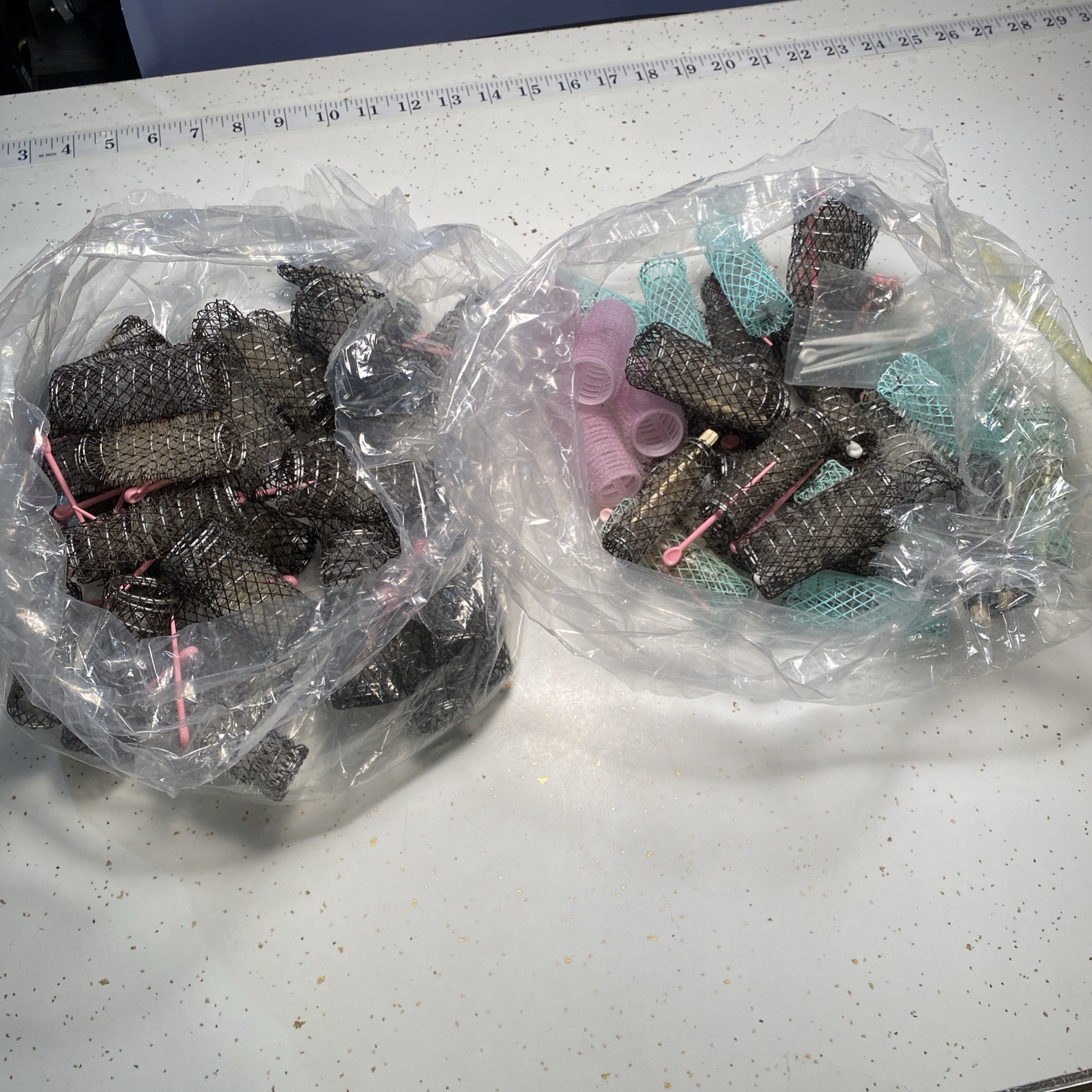 как выглядит VINTAGE Wire Brush Mesh Hair Rollers Curlers Black Green White Pink Picks фото