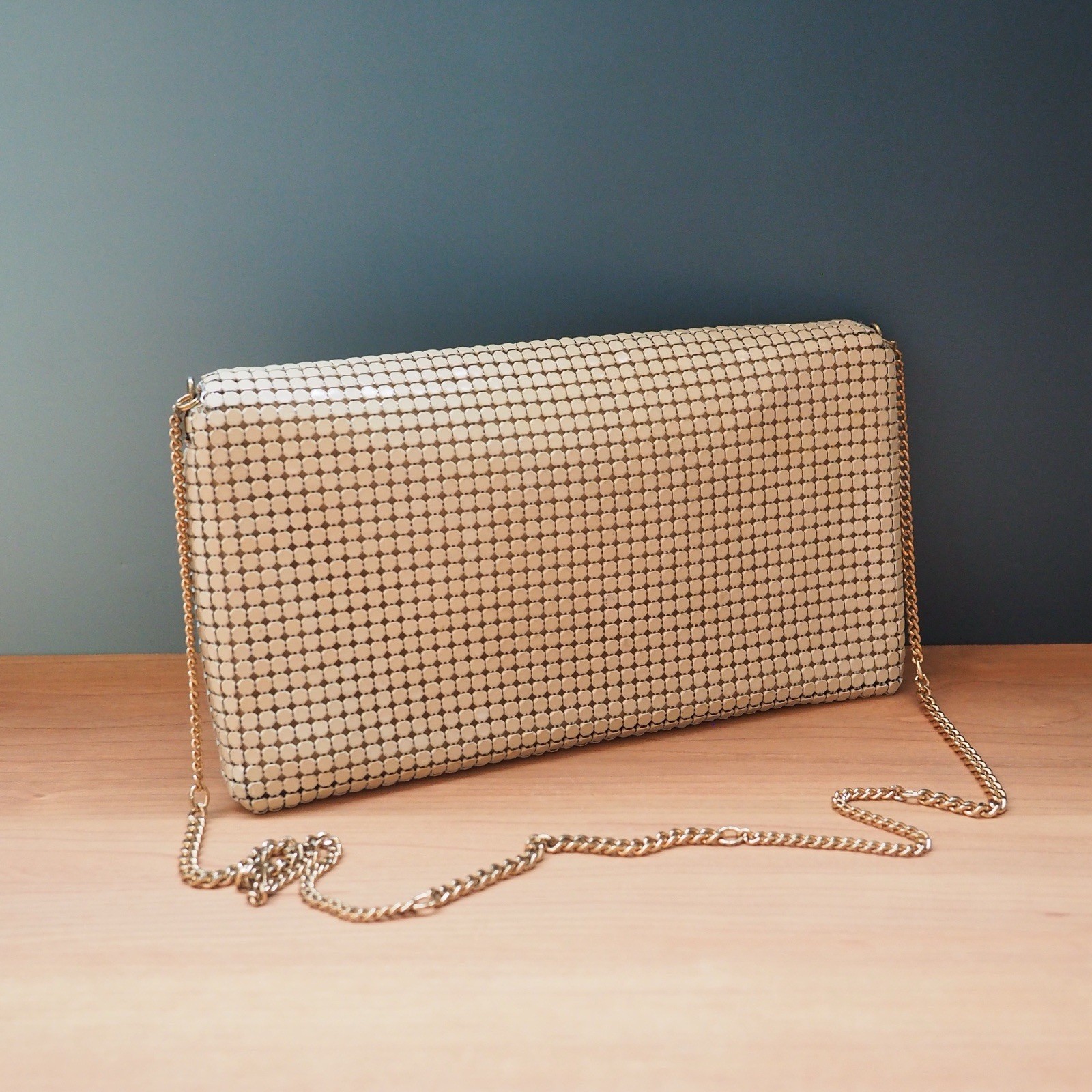 Vintage Glomesh 1980s Beige Mesh Shoulder Bag Made in Australia Retro Purse
