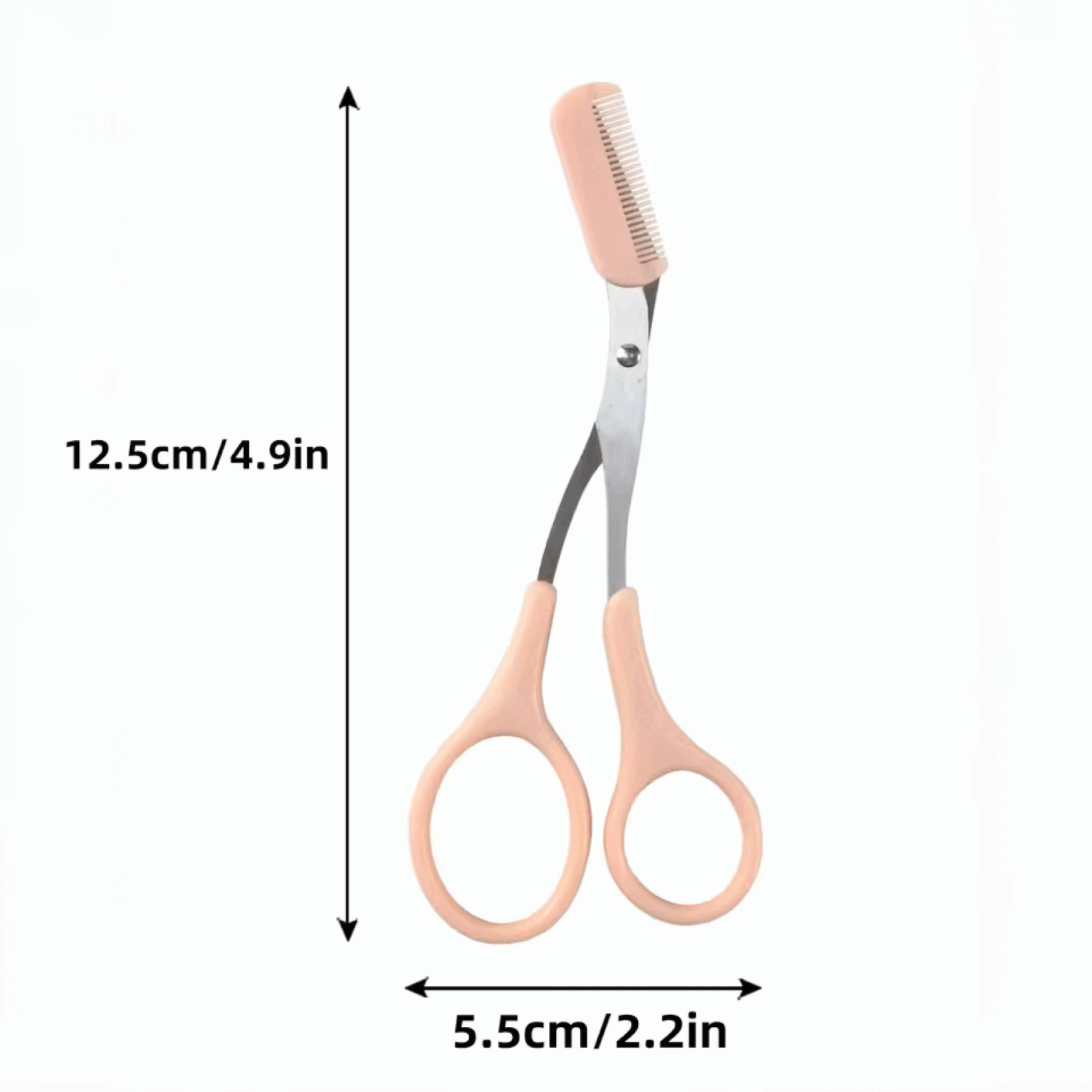 Pink eyebrow trimming scissors with built-in comb - stainless steel.