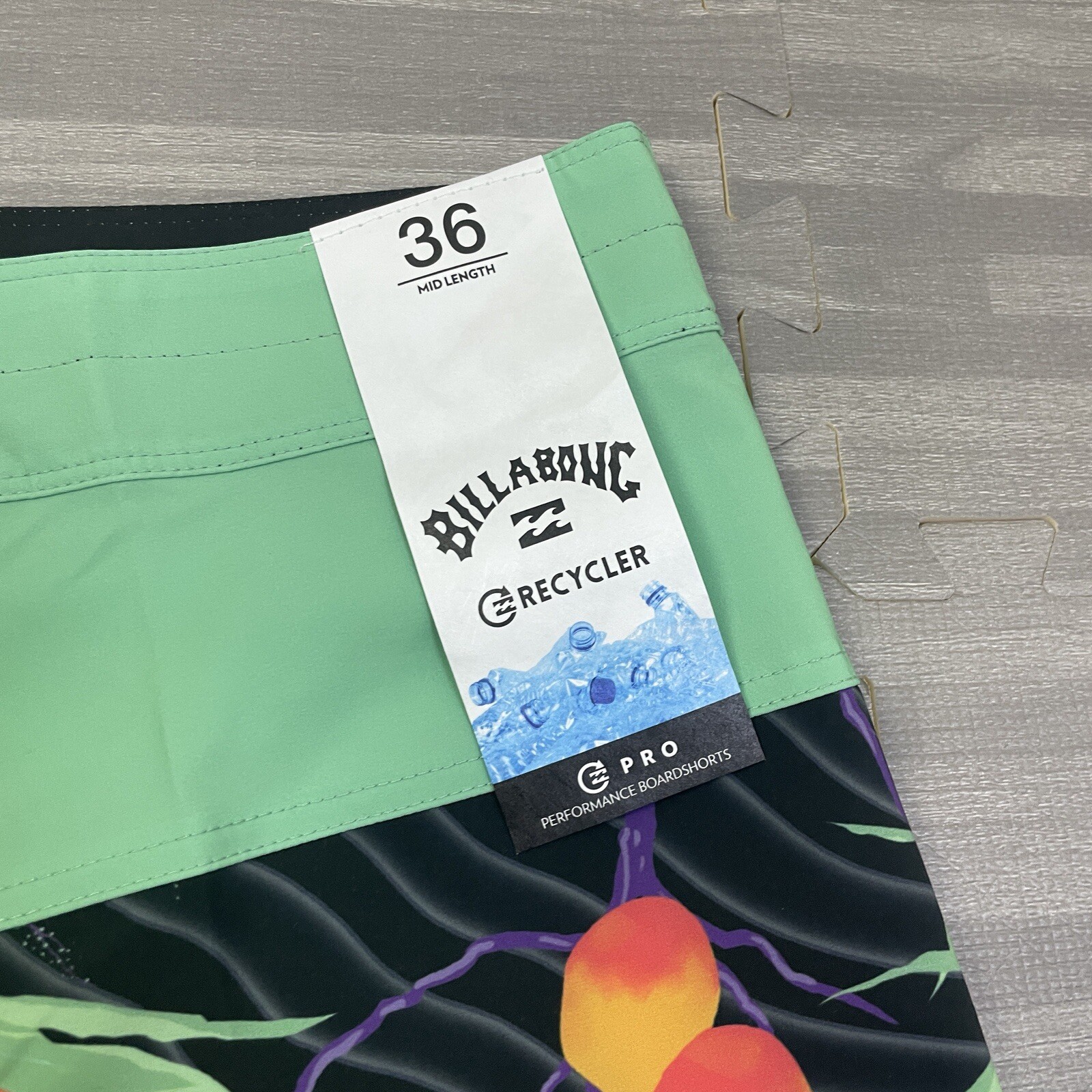 Billabong Tribong Pro Board Shorts 9 Mens Size 36 Trunks Black Floral Green 59