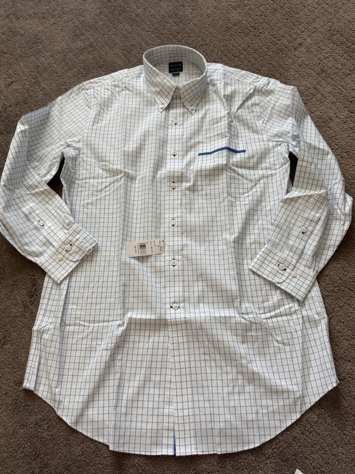 Brooks Brothers United Men s Blue Plaid Long Sleeve ButtonUp Shirt Sz 15.5 32/33