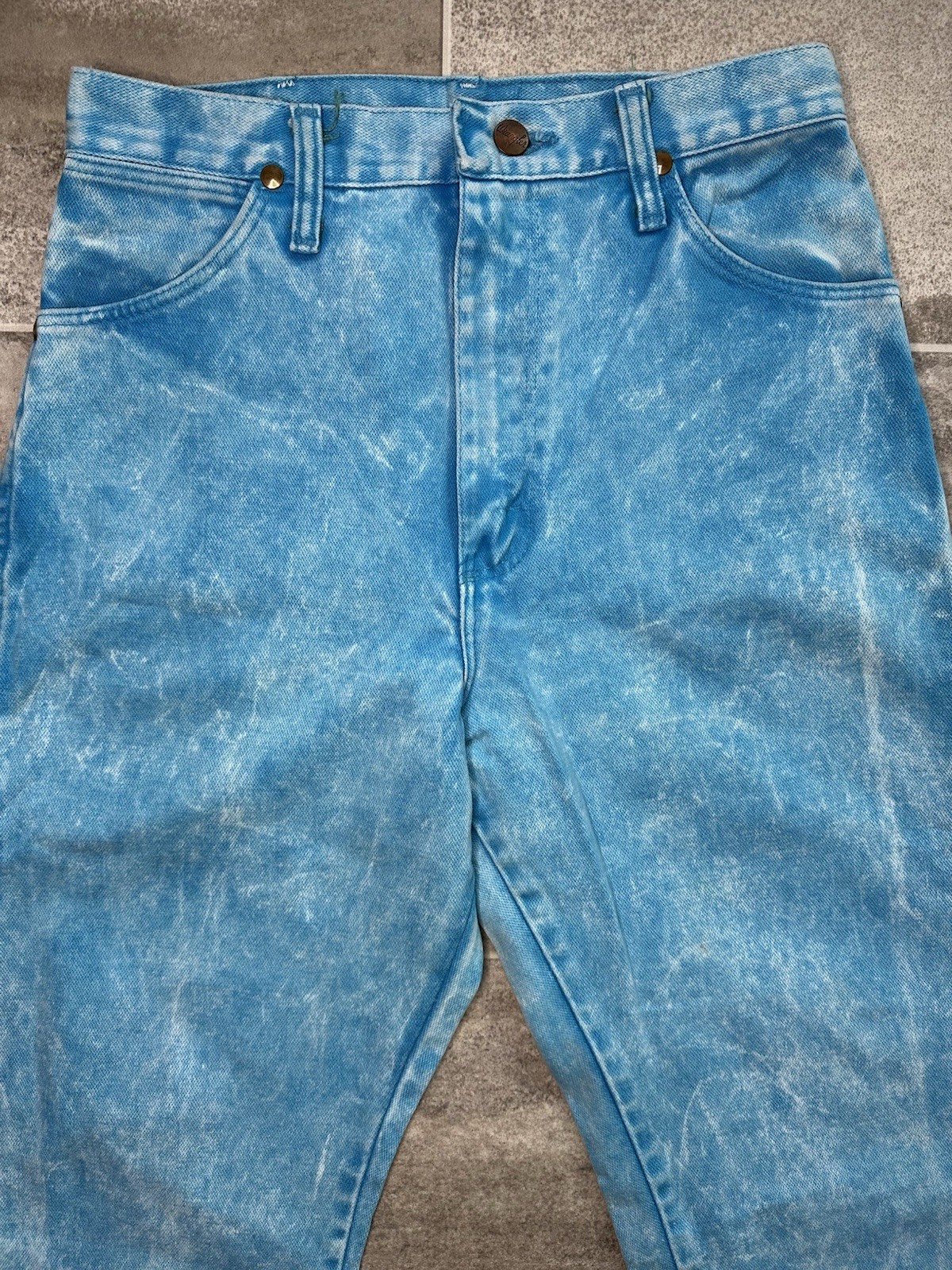 как выглядит VTG Wranglers Womens Cowboy Cut Slim Fit Acid Wash Blue Style 14MWZHQ Sz 13x34 фото