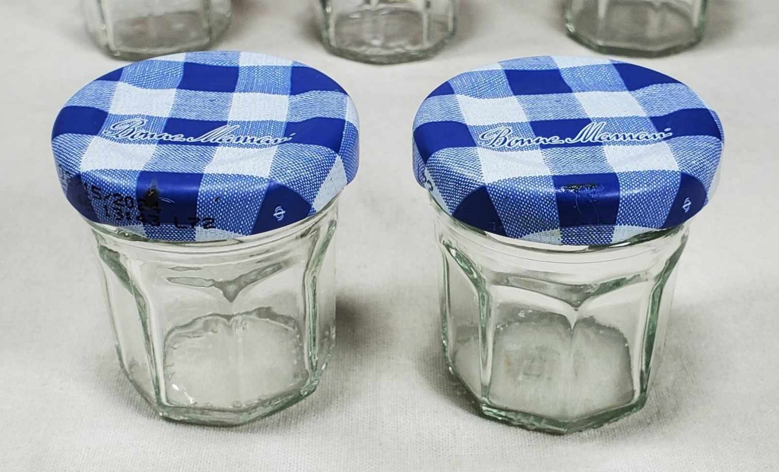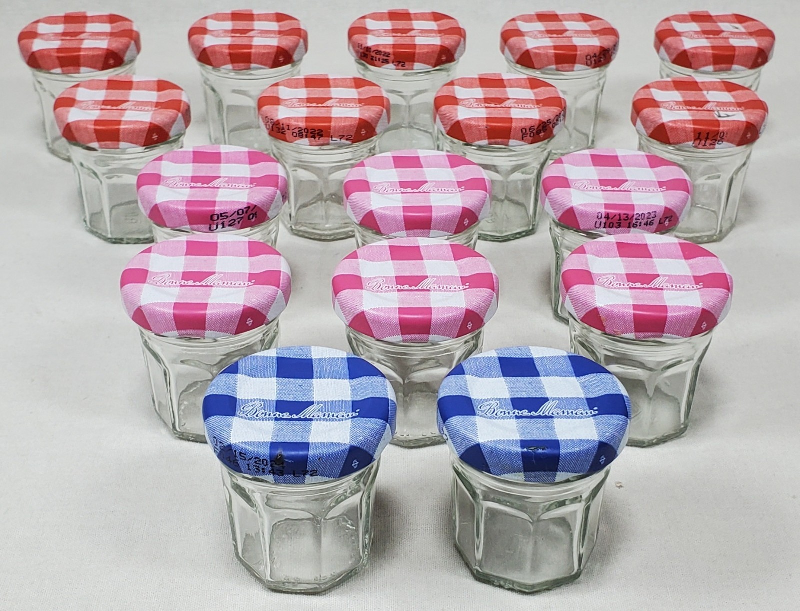 Lot Of 17 Bonne Maman Glass Jars Gingham Lids Clear Glass 9 Red 6 Pink 2 Blue