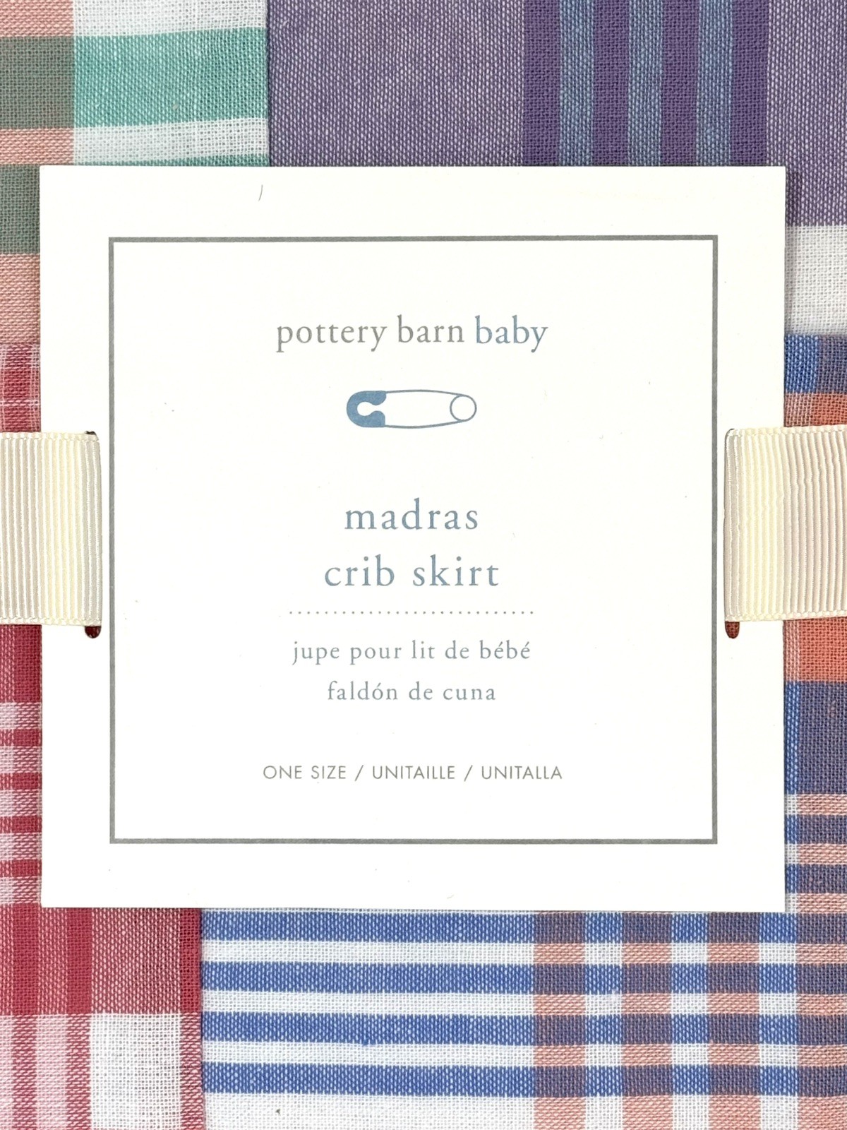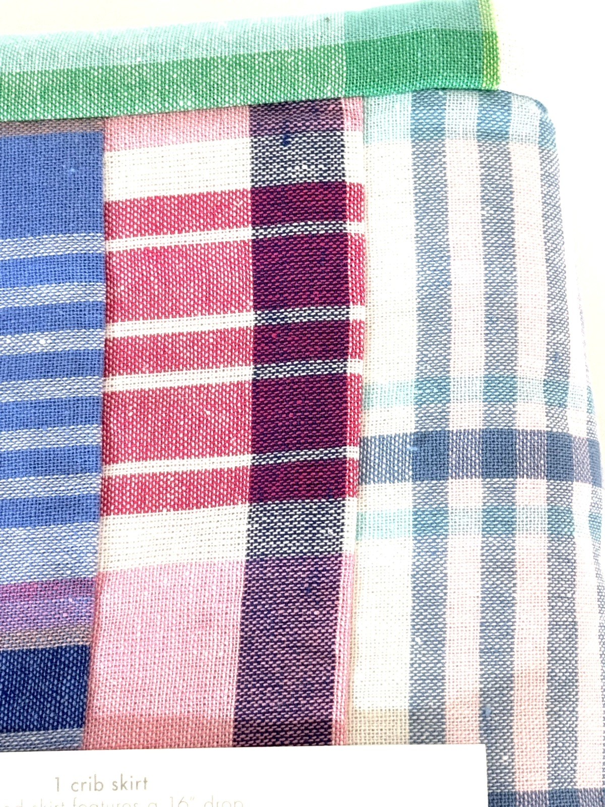 Pottery Barn Baby Madras Crib Skirt NWT 59 Pink Aqua Blue White Purple
