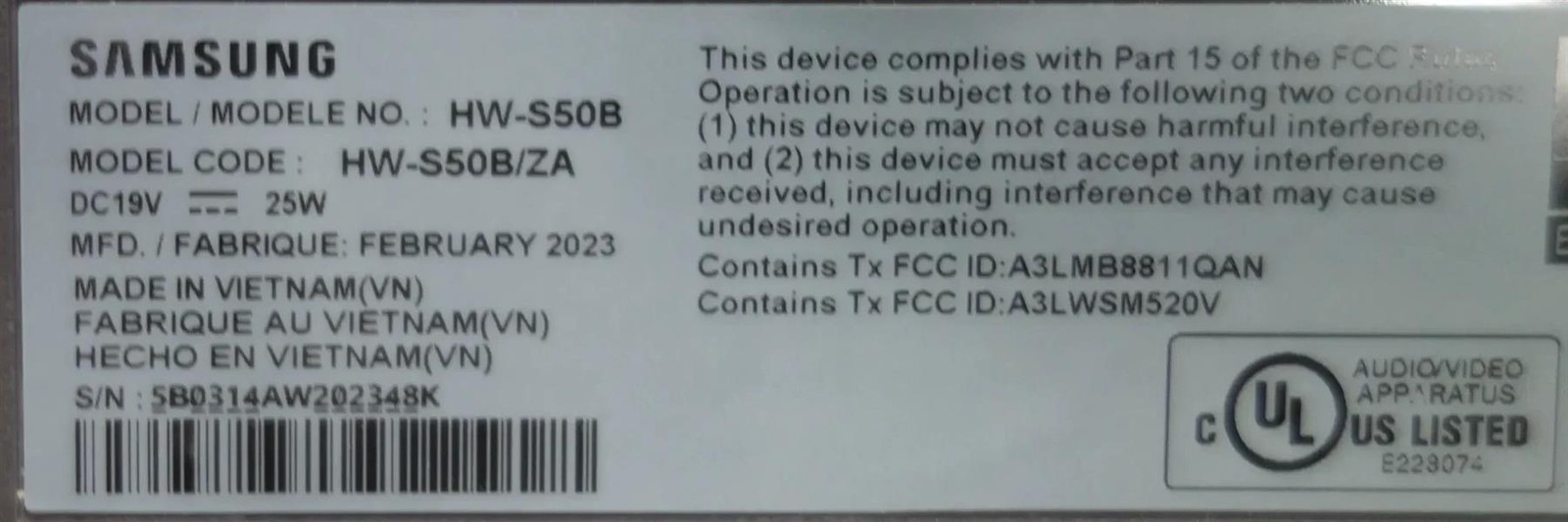 MPN: HW-S50B/ZA