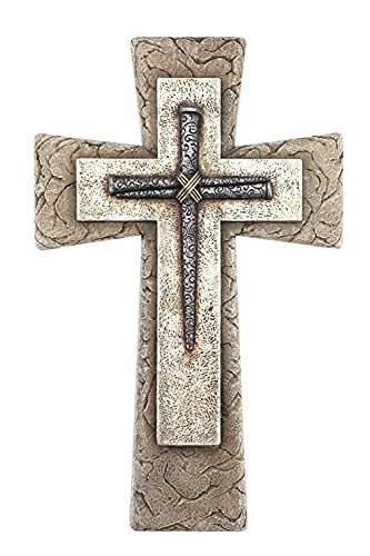 Comfy Hour Faith and Hope Collection Faux Stone with Nail Wall Cross