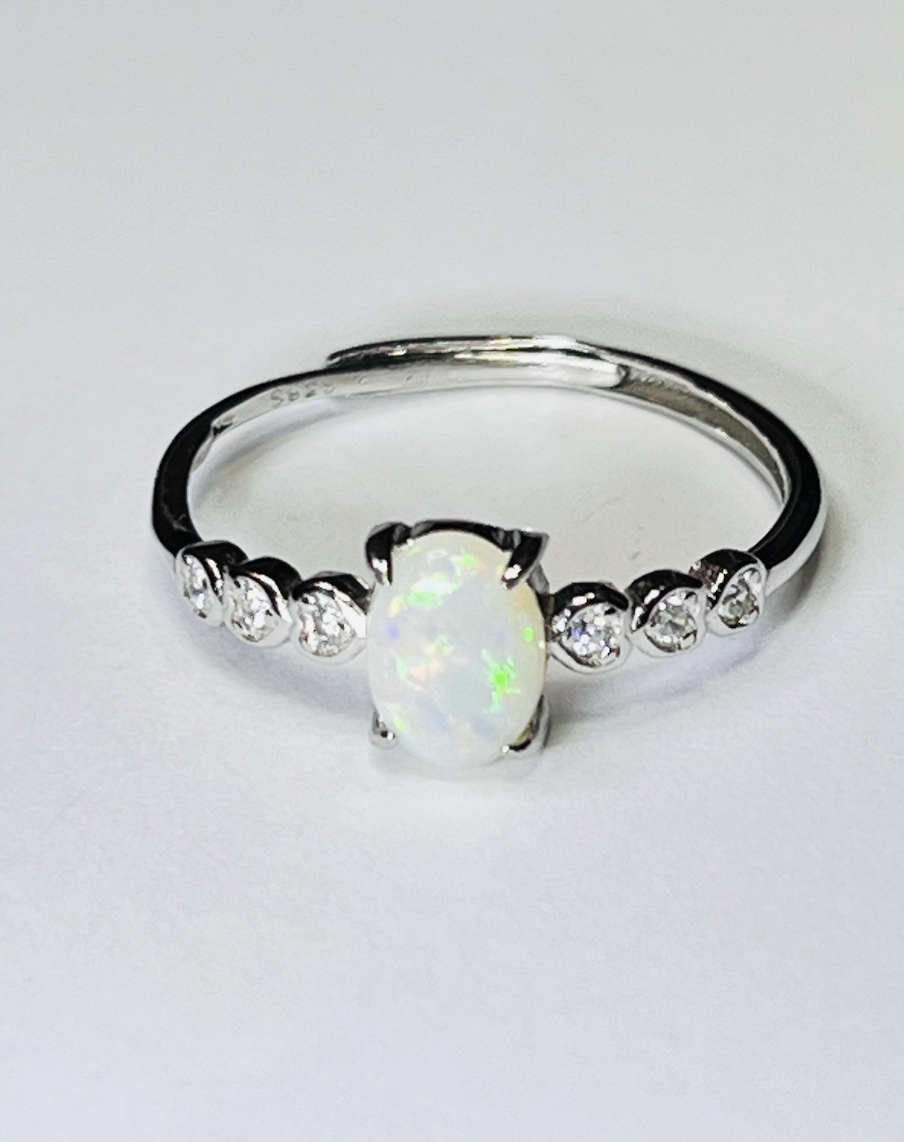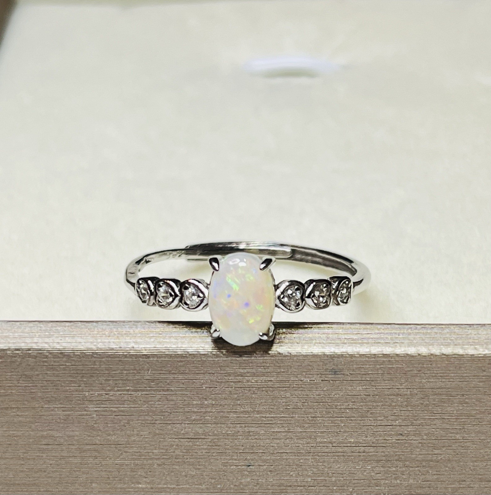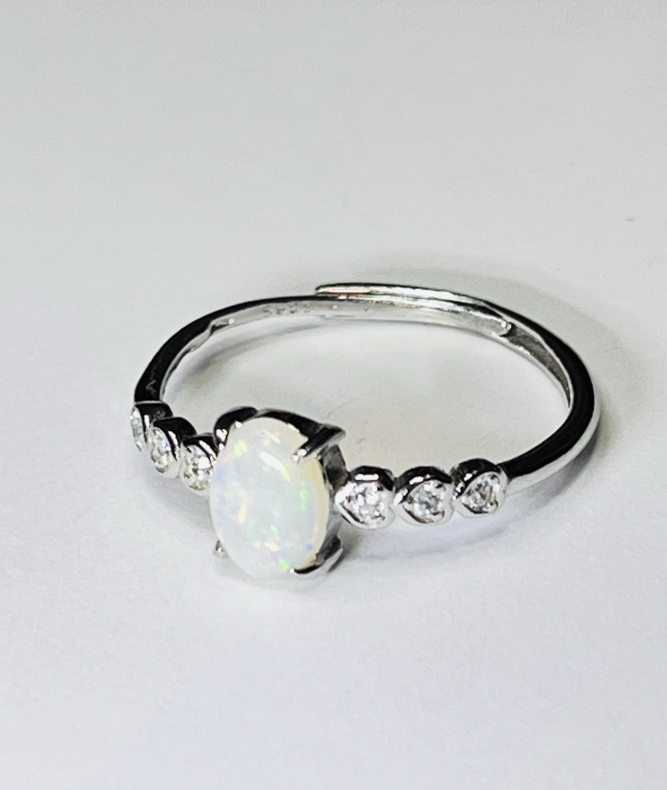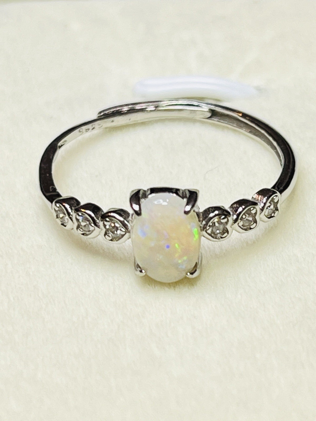 как выглядит 925 Sterling Silver Colorful Natural White Australian Opal Ring Certified фото