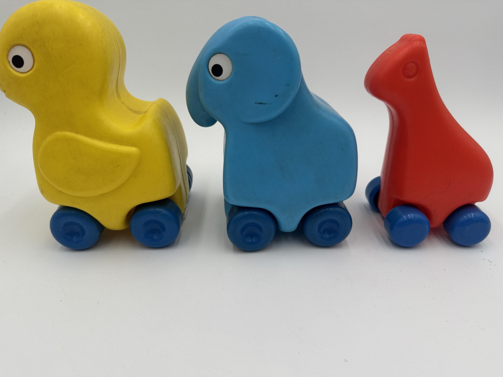 Vintage Playskool Push Pull Animal Toys Set Duck Elephant Dinosaur 1980s