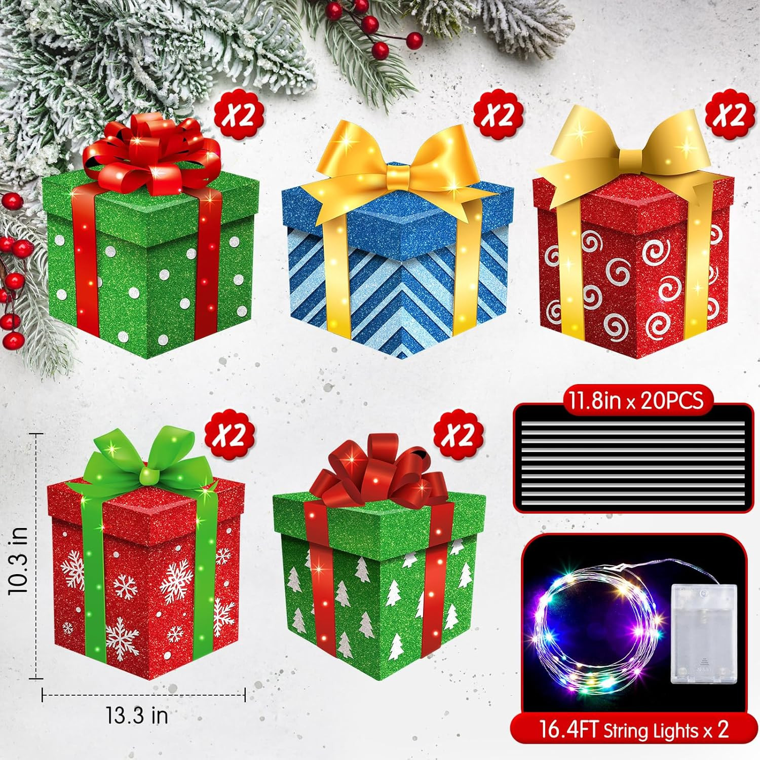 10 Pcs Christmas Yard Signs Decor with LED Lights Glitter Yard Signs with Stakes