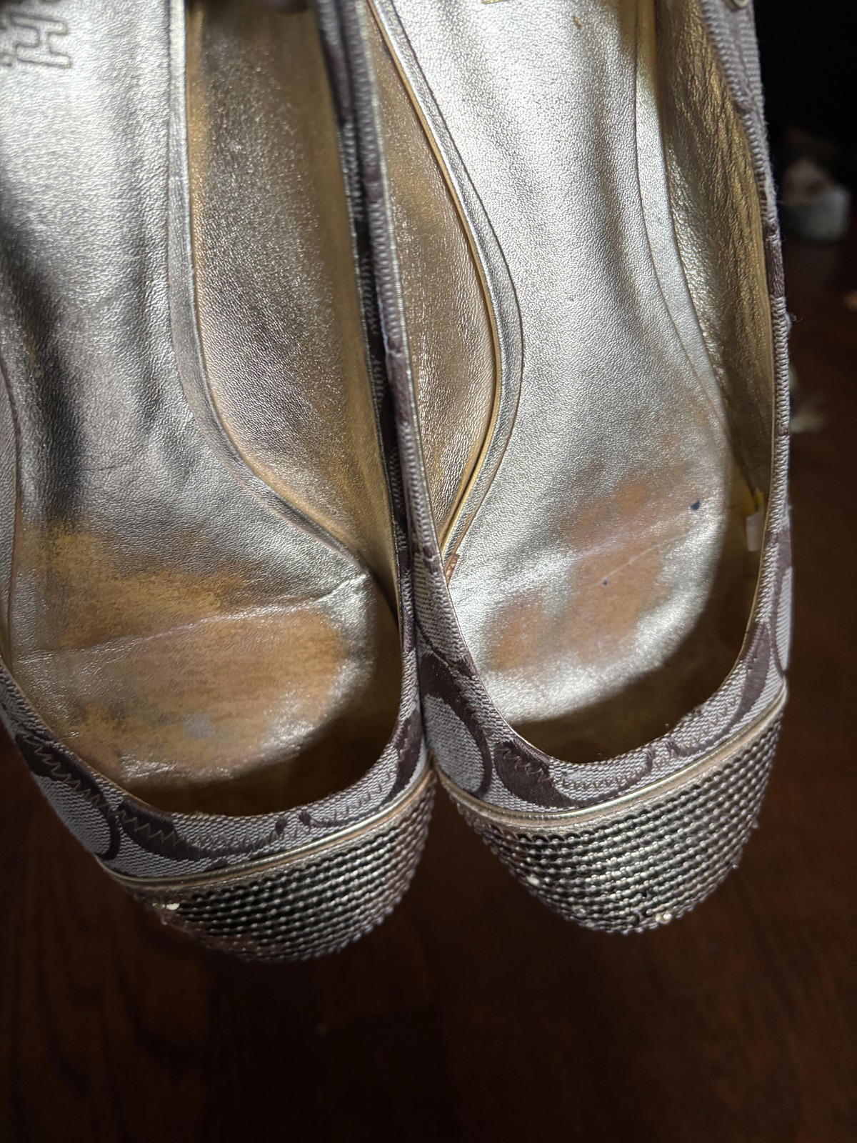 Coach Women's Brown Signature Flats with Gold Sequin Toe