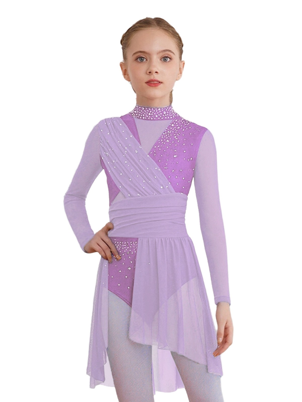 как выглядит Kids Girls Dancewear Fringed Dress Ballroom Costume Gymnastic Long Sleeve Back фото