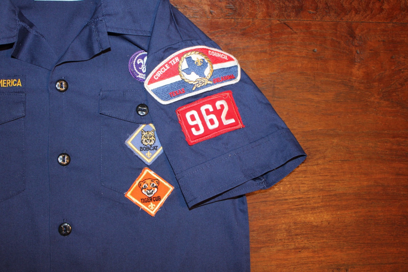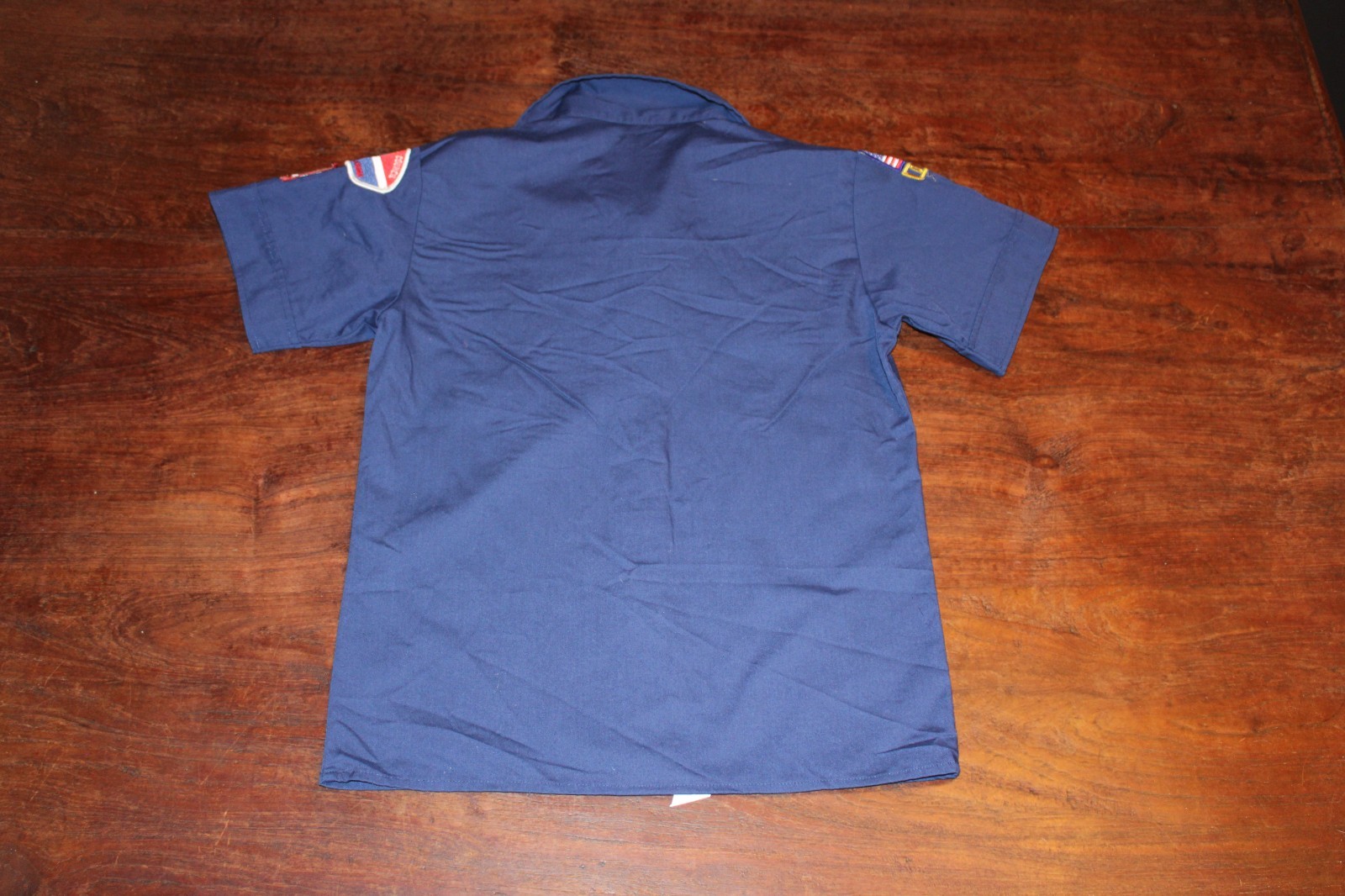 как выглядит Boy Scouts of America BSA Youth Shirt Blue Medium Sewn Patches Short Sleeve фото