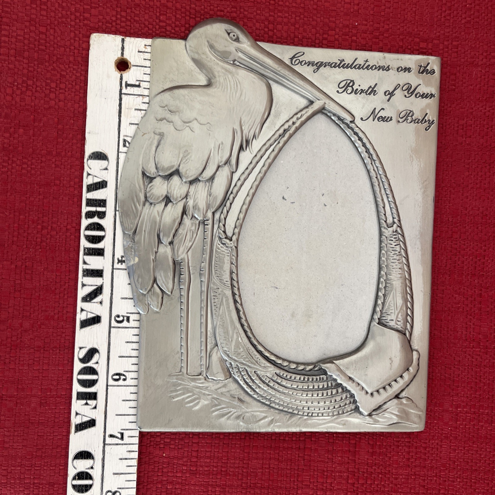 Stork with Baby Bundle - Pewter Color Picture Frame Newborn Boy Girl Gift