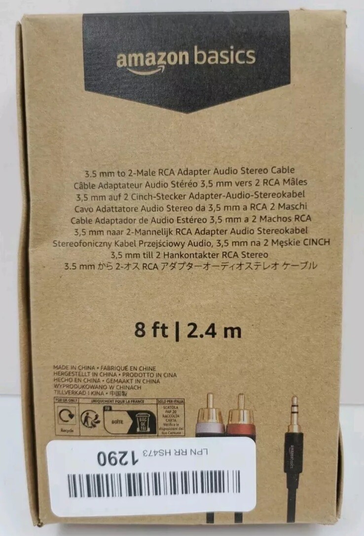 Amazon Basics 3.5mm to 2-Male RCA Adapter Audio Stereo Cable - 4 Feet, Black