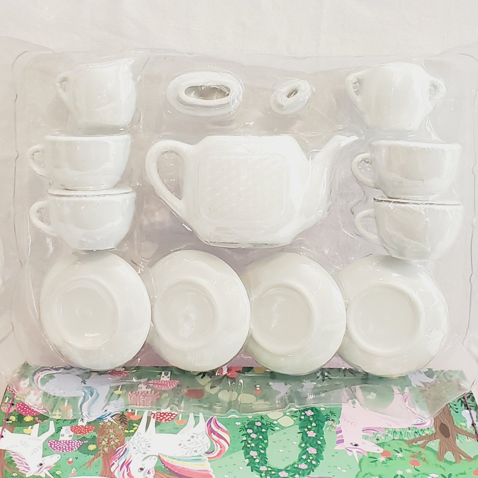 Crocodile Creek Unicorn China Tea Set 13 Pc has some wear on box