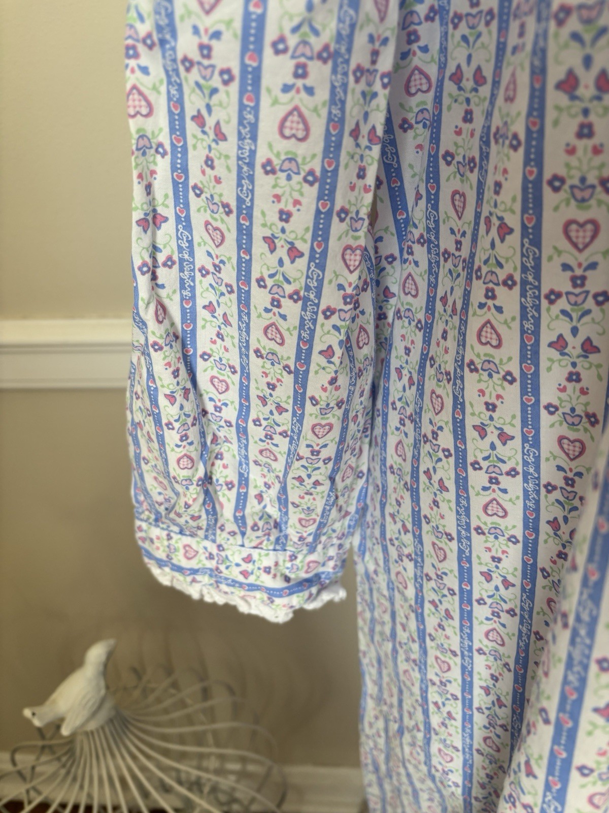 Lanz Of Salzburg Womens Size L Blue Floral Hearts Cotton Nightgown Long Sleeve