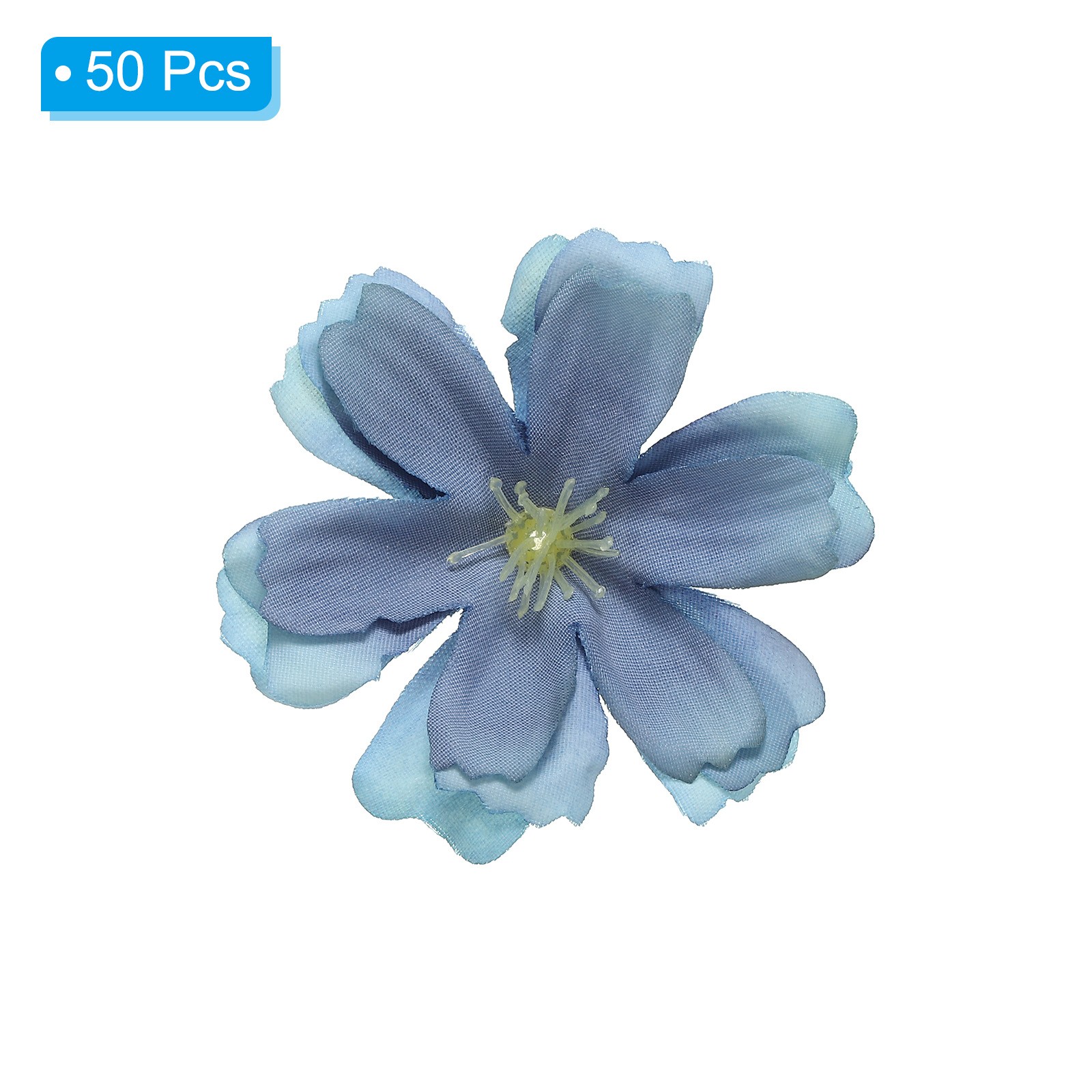50Pcs 1.77 Artificial Silk Plum Blossom Flower Heads Fake Flowers for DIY Blue
