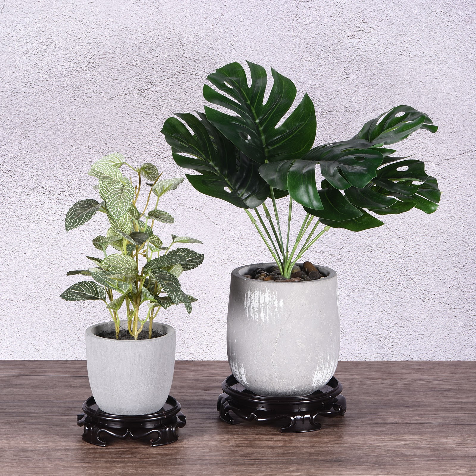 Planter Display Stand 5.5 Dia Imitation Wood Style Round Bonsai Base Black