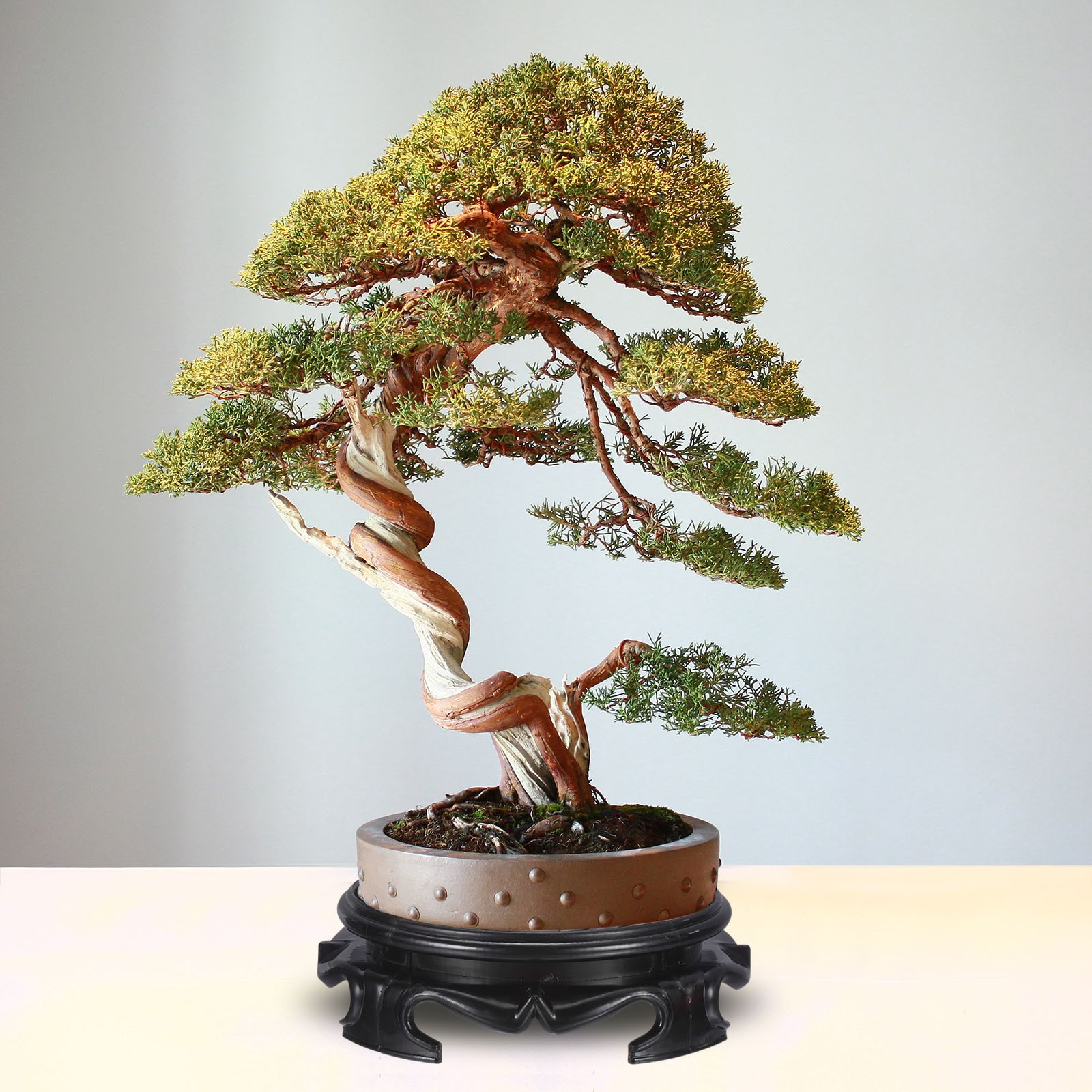как выглядит Planter Display Stand 5.5" Dia Imitation Wood Style Round Bonsai Base Black фото