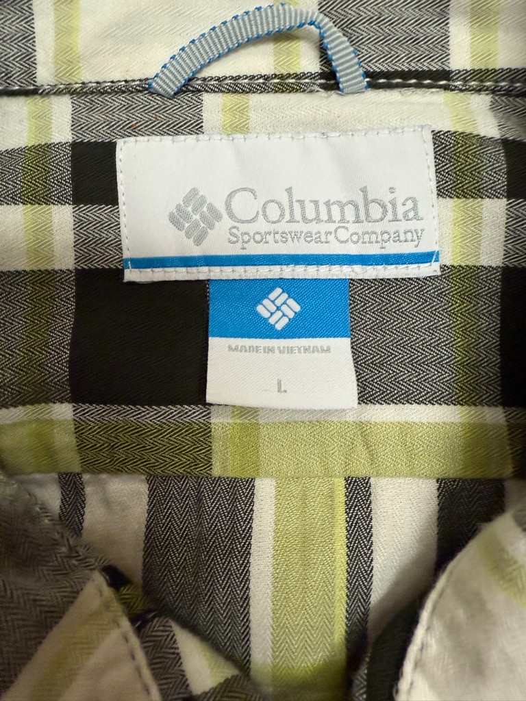 Mens Columbia 100 cotton Long Sleeve Button Up Plaid Shirt. Size L